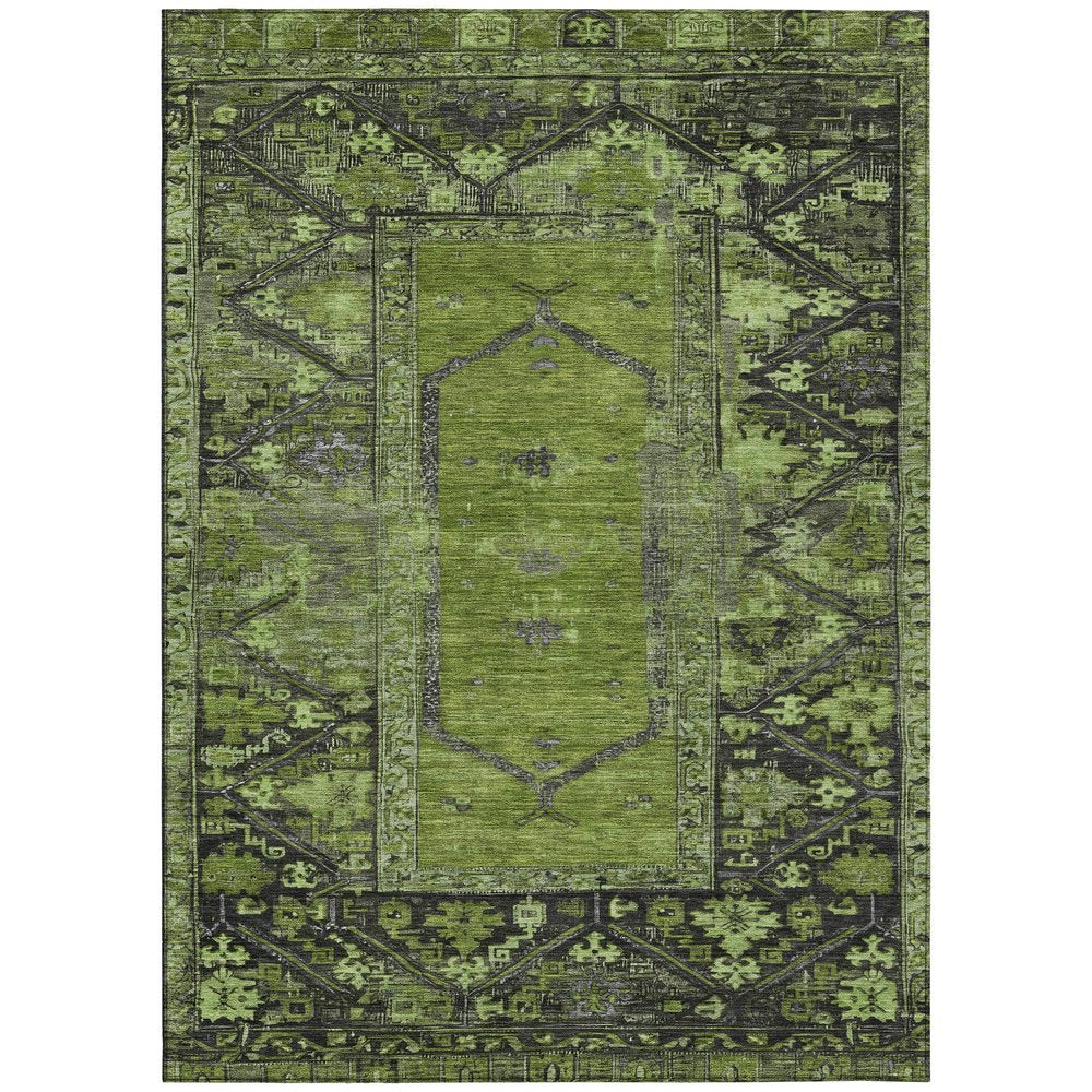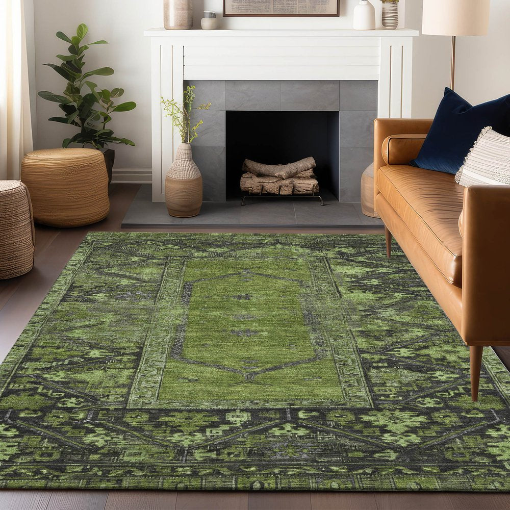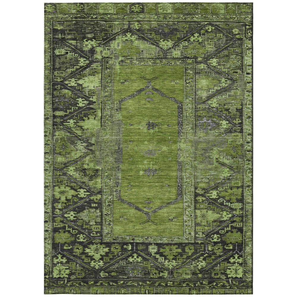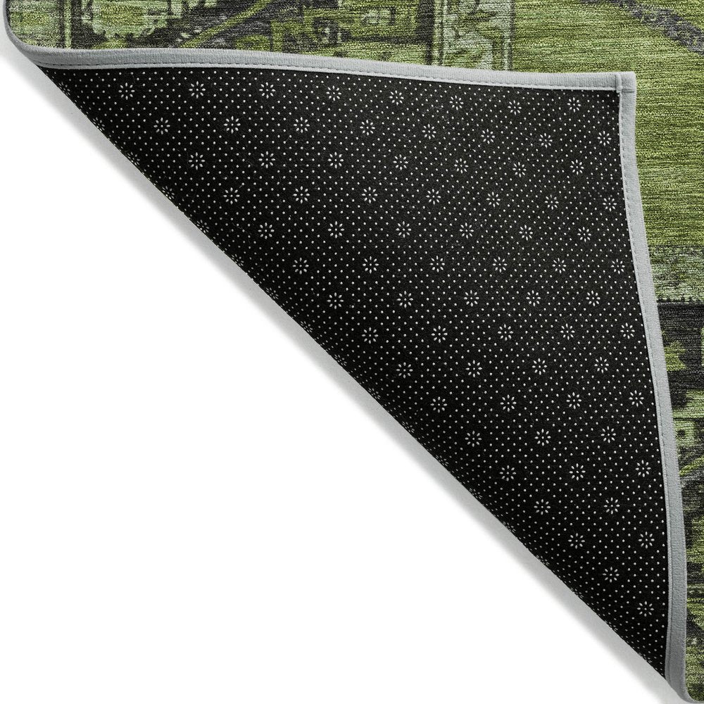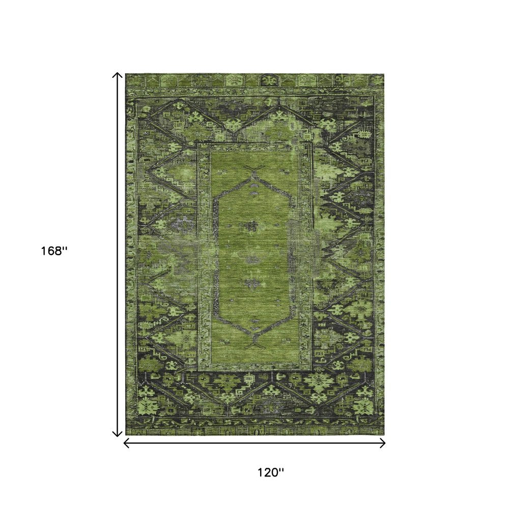 10' X 14' Olive Green And Gray Oriental Washable Indoor Outdoor Area Rug