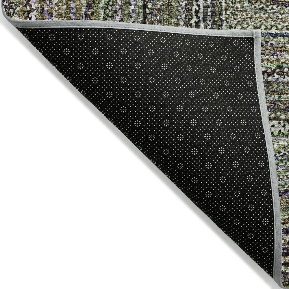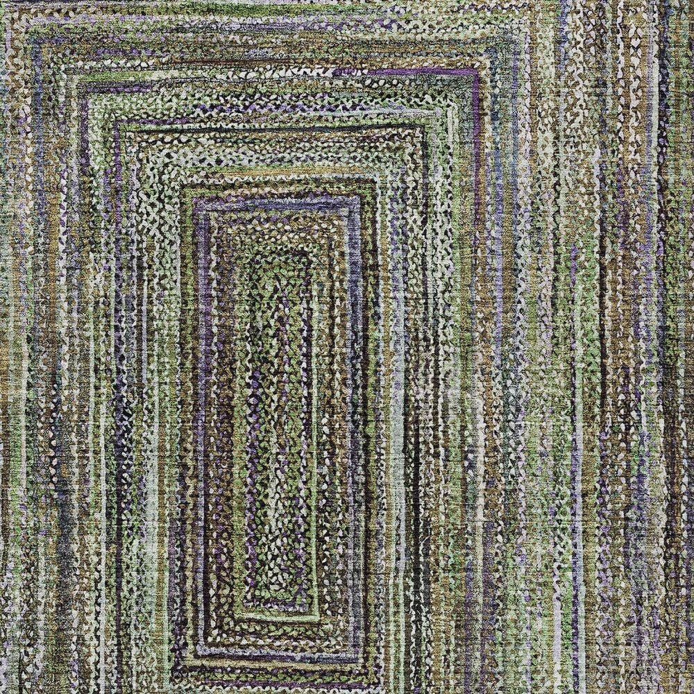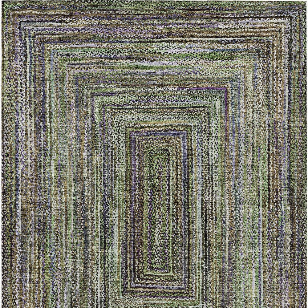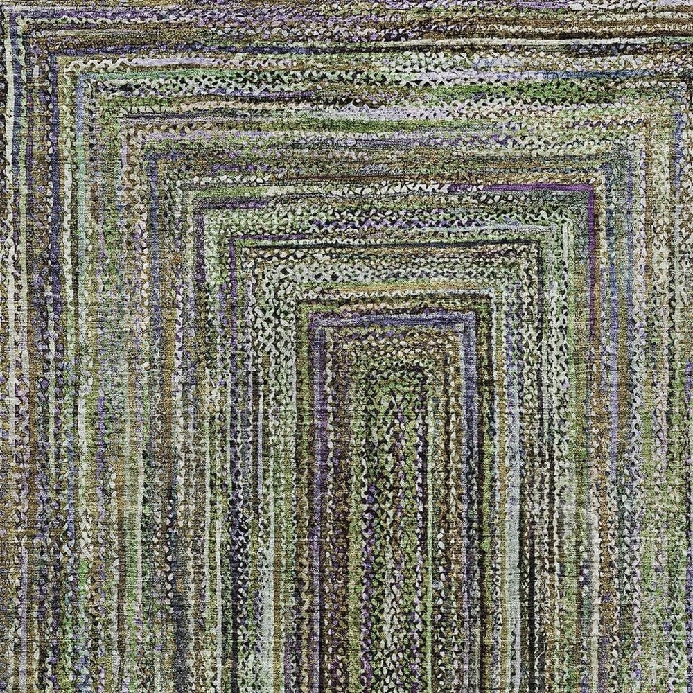 10' X 14' Olive Green Lavender And Fern Green Geometric Washable Indoor Outdoor Area Rug