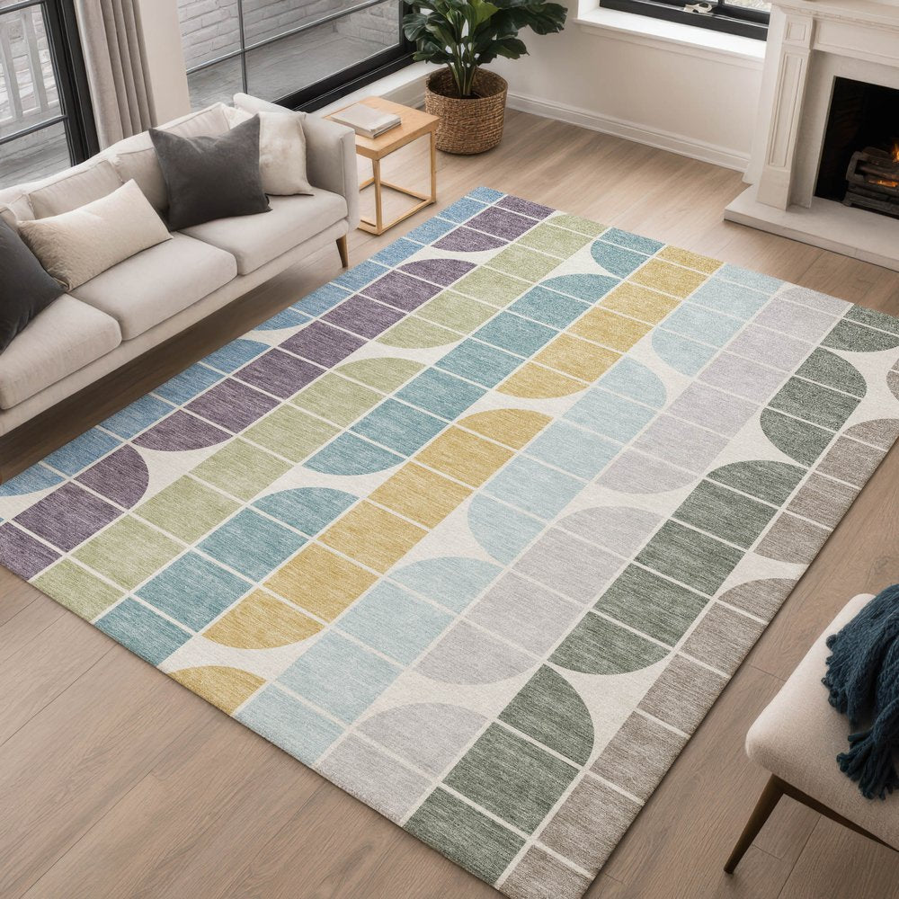 Add great coloration and comfortable texture to your space with this 10-foot x 14-foot pale aqua purple gray and copper geometric washable indoor outdoor area rug. This rectangle shaped rug features a geometric design that will work well both indoors or out. A classic shape marries with good looking design for your living room, hall, bedroom, porch, patio, or poolside. Ideal for outdoor spaces or high traffic areas with kids and pets, this rug is made from heavy duty polyester that is stain resistant to help repel water, dirt, and stains. Makes a great way to dress up your patio, porch, or poolside, but also works well as a durable and easy to maintain option in the kitchen, family room, or mudroom. 120.00-inch h x 168.00-inch w x 0.19-inch d.