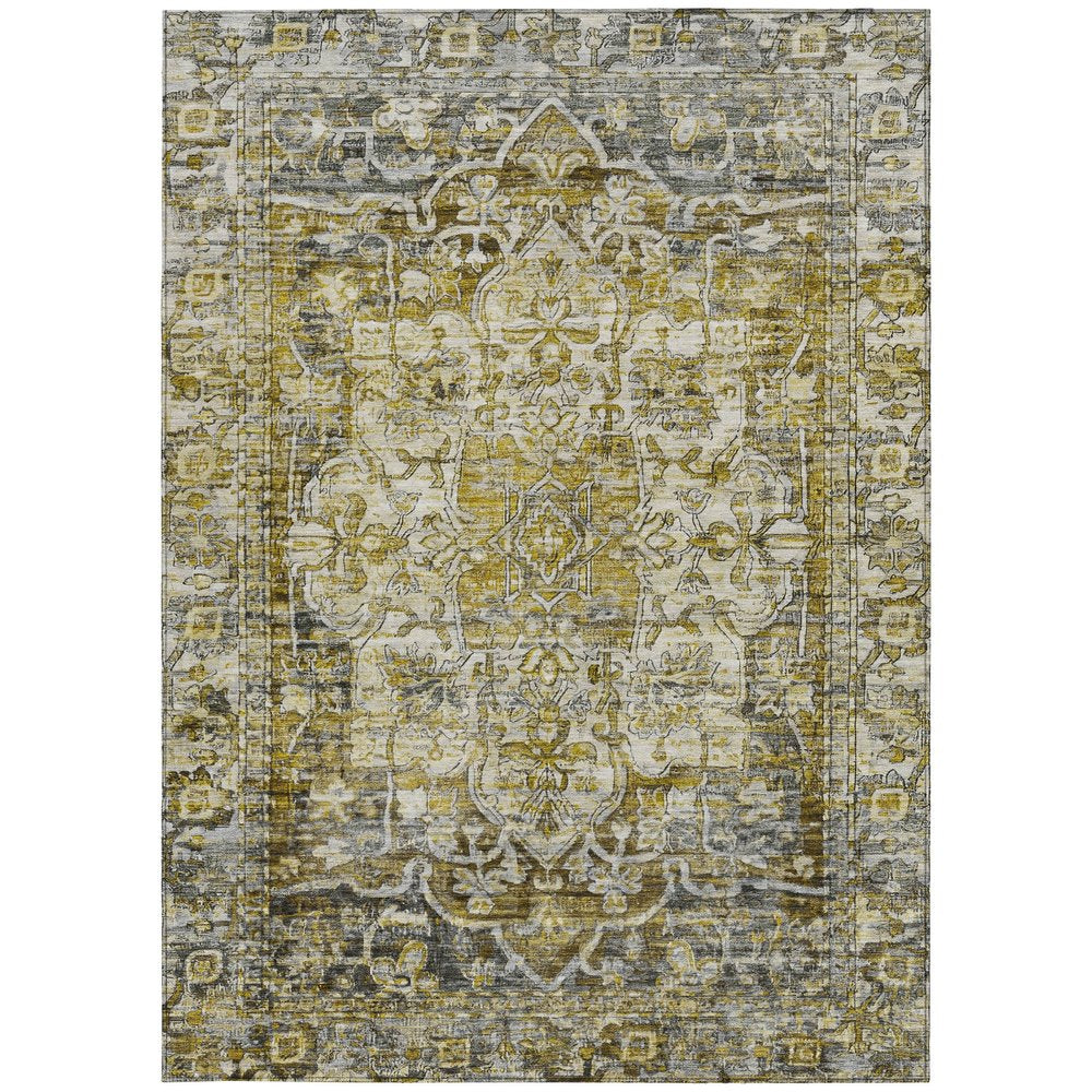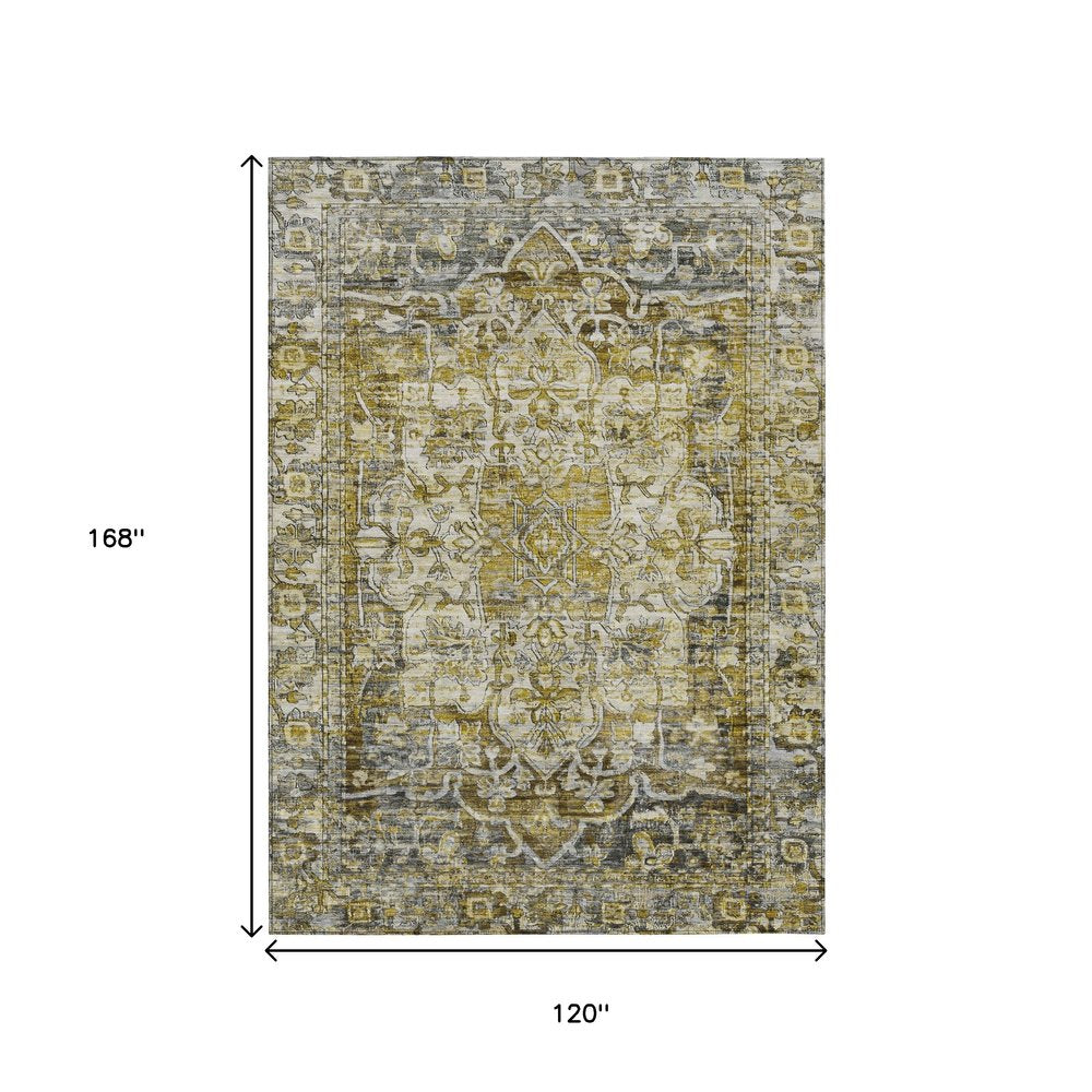 Add great coloration and comfortable texture to your space with this 10-foot x 14-foot pewter gray and gold floral medallion washable indoor outdoor area rug. This rectangle shaped rug features a floral medallion design that will work well both indoors or out. A classic shape marries with good looking design for your living room, hall, bedroom, porch, patio, or poolside. Ideal for outdoor spaces or high traffic areas with kids and pets, this rug is made from heavy duty polyester that is stain resistant to help repel water, dirt, and stains. Makes a great way to dress up your patio, porch, or poolside, but also works well as a durable and easy to maintain option in the kitchen, family room, or mudroom. 120-inch h x 168-inch w x 0.19-inch d.