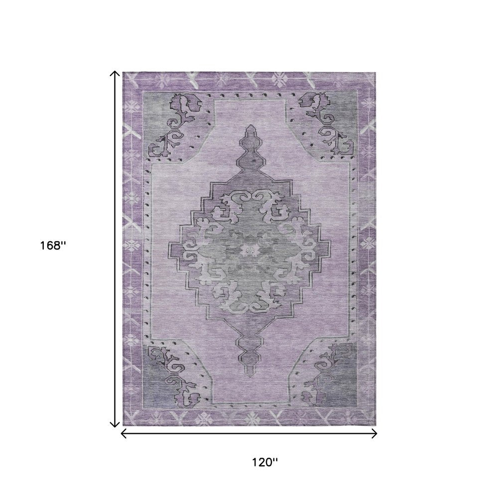 Add great coloration and comfortable texture to your space with this 10-foot x 14-foot plum and gray geometric washable indoor outdoor area rug. This rectangle shaped rug features a geometric design that will work well both indoors or out. A classic shape marries with good looking design for your living room, hall, bedroom, porch, patio, or poolside. Ideal for outdoor spaces or high traffic areas with kids and pets, this rug is made from heavy duty polyester that is stain resistant to help repel water, dirt, and stains. Makes a great way to dress up your patio, porch, or poolside, but also works well as a durable and easy to maintain option in the kitchen, family room, or mudroom. 120-inch h x 168-inch w x 0.19-inch d.
