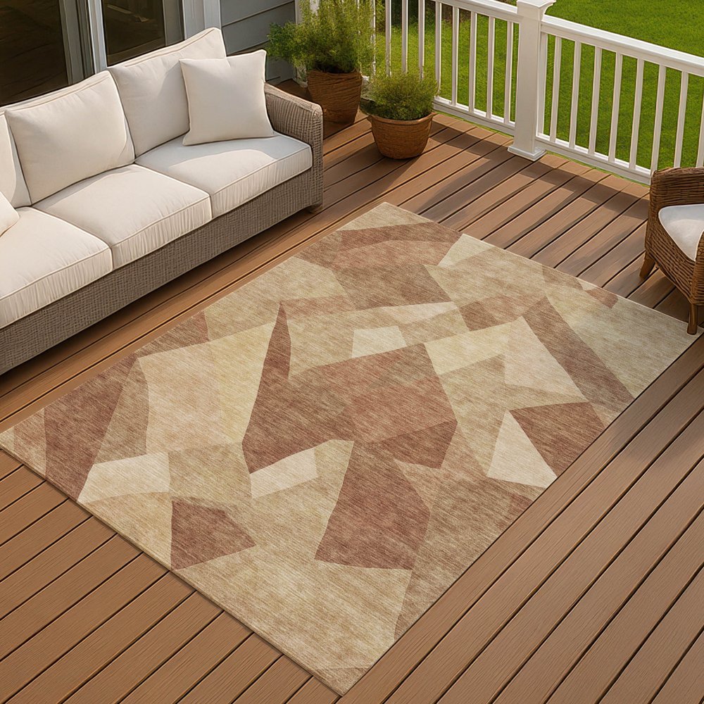 Add some artistry to your room with this 10-foot x 14-foot rust and beige abstract washable indoor outdoor area rug. This rectangle shaped rug features a abstract design that will work well both indoors or out. A classic shape marries with good looking design for your living room, hall, bedroom, porch, patio, or poolside. Ideal for outdoor spaces or high traffic areas with kids and pets, this rug is made from heavy duty polyester that is stain resistant to help repel water, dirt, and stains. Makes a great way to dress up your patio, porch, or poolside, but also works well as a durable and easy to maintain option in the kitchen, family room, or mudroom. 120.00-inch h x 168.00-inch w x 0.19-inch d.