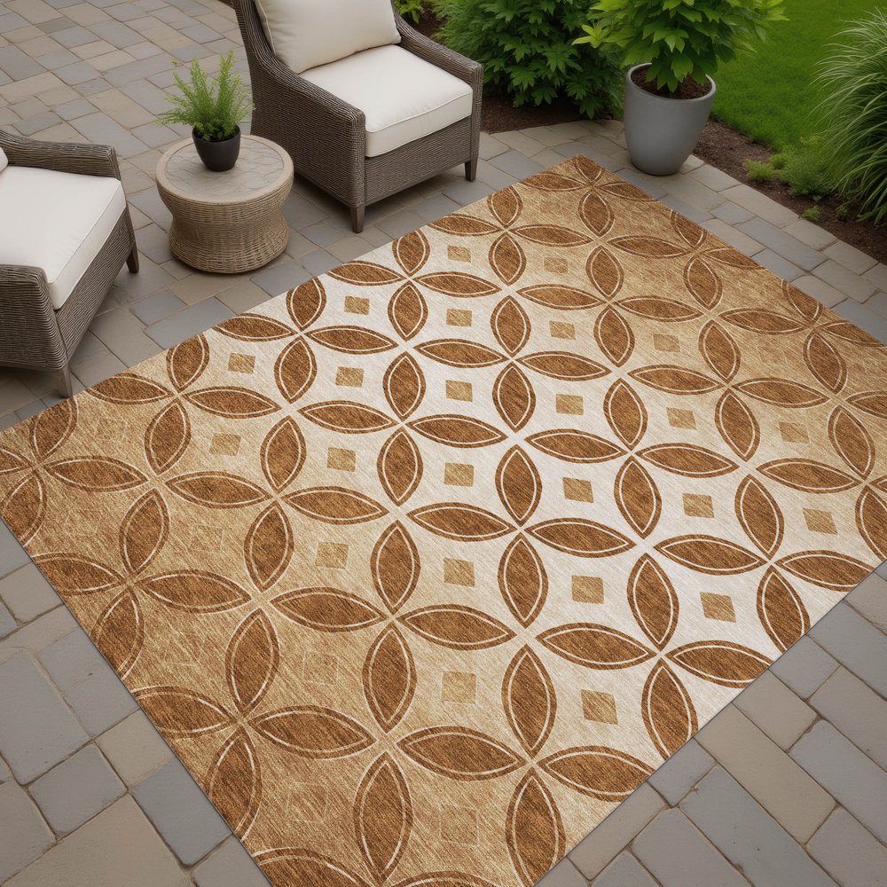 Set an inviting tone in your space with this 10-foot x 14-foot rust and beige geometric washable indoor outdoor area rug. This rectangle shaped rug features a geometric design that will work well both indoors or out. A classic shape marries with good looking design for your living room, hall, bedroom, porch, patio, or poolside. Ideal for outdoor spaces or high traffic areas with kids and pets, this rug is made from heavy duty polyester that is stain resistant to help repel water, dirt, and stains. Versatile in use, durable, and easy to maintain, this rug is an ideal solution to add a decorative and inviting touch to your indoor or outdoor space. 120.00-inch h x 168.00-inch w x 0.19-inch d.