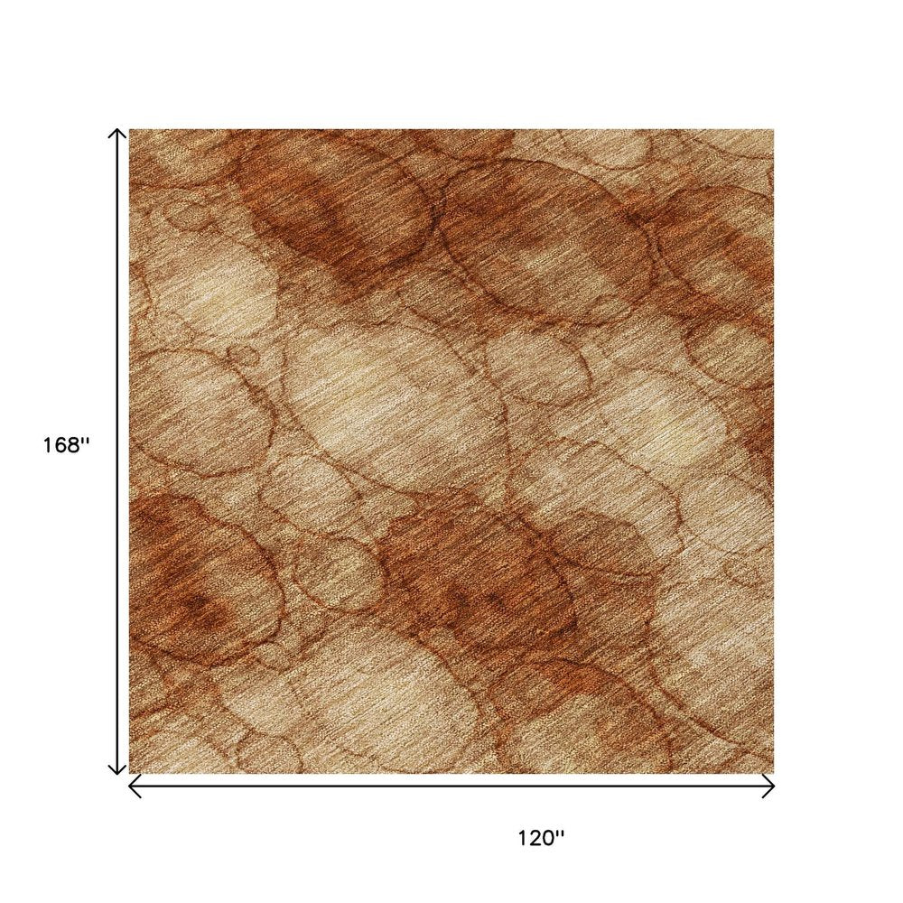 Set an inviting tone in your space with this 10-foot x 14-foot rust and orange abstract washable indoor outdoor area rug. This rectangle shaped rug features a abstract design that will work well both indoors or out. A classic shape marries with good looking design for your living room, hall, bedroom, porch, patio, or poolside. Ideal for outdoor spaces or high traffic areas with kids and pets, this rug is made from heavy duty polyester that is stain resistant to help repel water, dirt, and stains. Makes a great way to dress up your patio, porch, or poolside, but also works well as a durable and easy to maintain option in the kitchen, family room, or mudroom. 120.00-inch h x 168.00-inch w x 0.19-inch d.