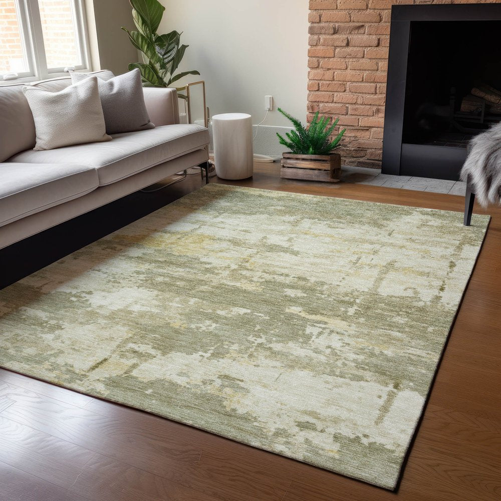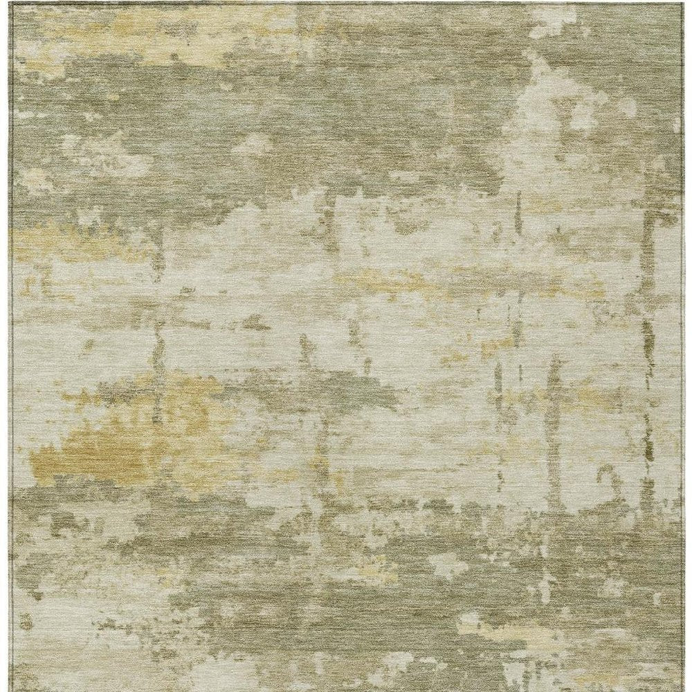 10' X 14' Sage Ivory And Gold Abstract Washable Indoor Outdoor Area Rug