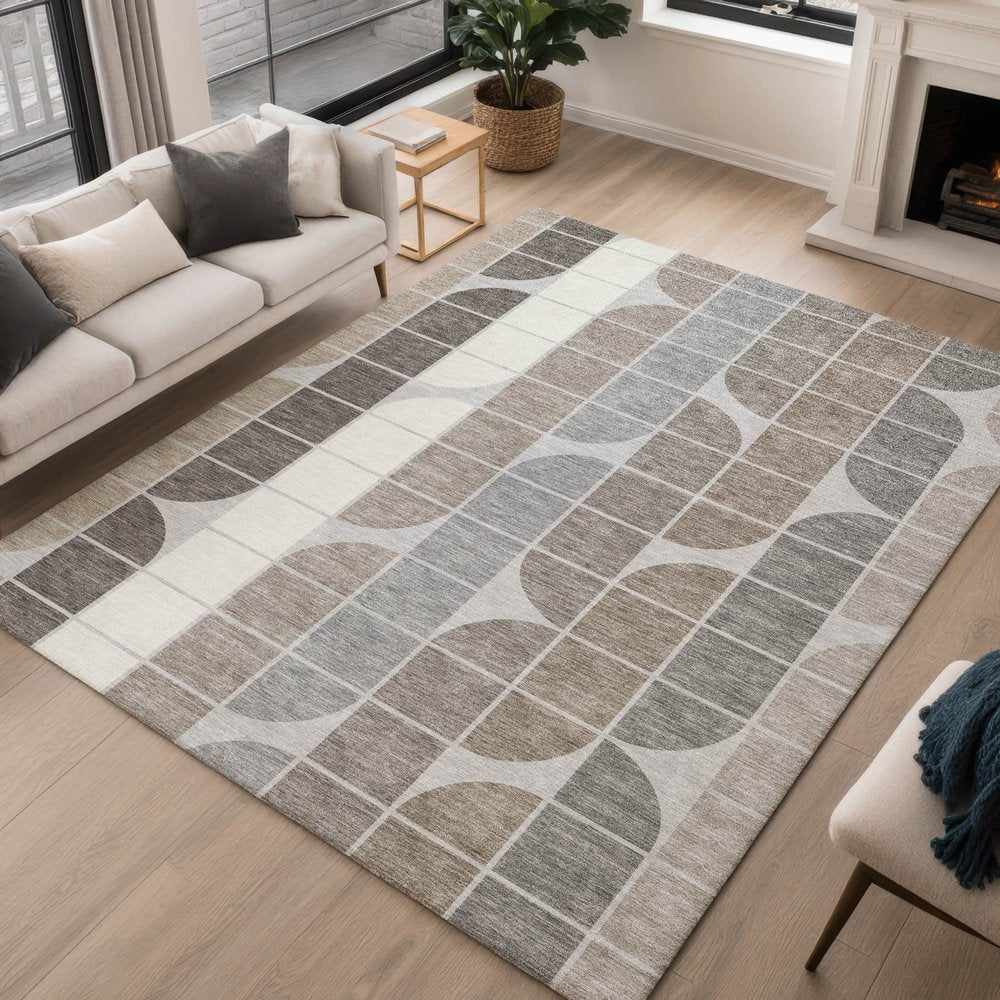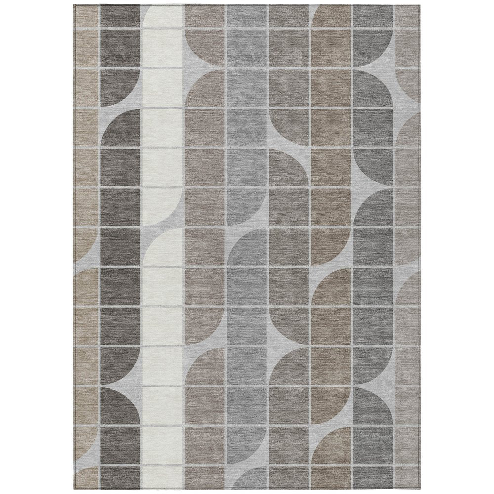 This 10-foot x 14-foot silver brown and gray geometric washable indoor outdoor area rug, is a great way to add warmth to a room. This rectangle shaped rug features a geometric design that will work well both indoors or out. A classic shape marries with good looking design for your living room, hall, bedroom, porch, patio, or poolside. Ideal for outdoor spaces or high traffic areas with kids and pets, this rug is made from heavy duty polyester that is stain resistant to help repel water, dirt, and stains. Versatile in use, durable, and easy to maintain, this rug is an ideal solution to add a decorative and inviting touch to your indoor or outdoor space. 120.00-inch h x 168.00-inch w x 0.19-inch d.