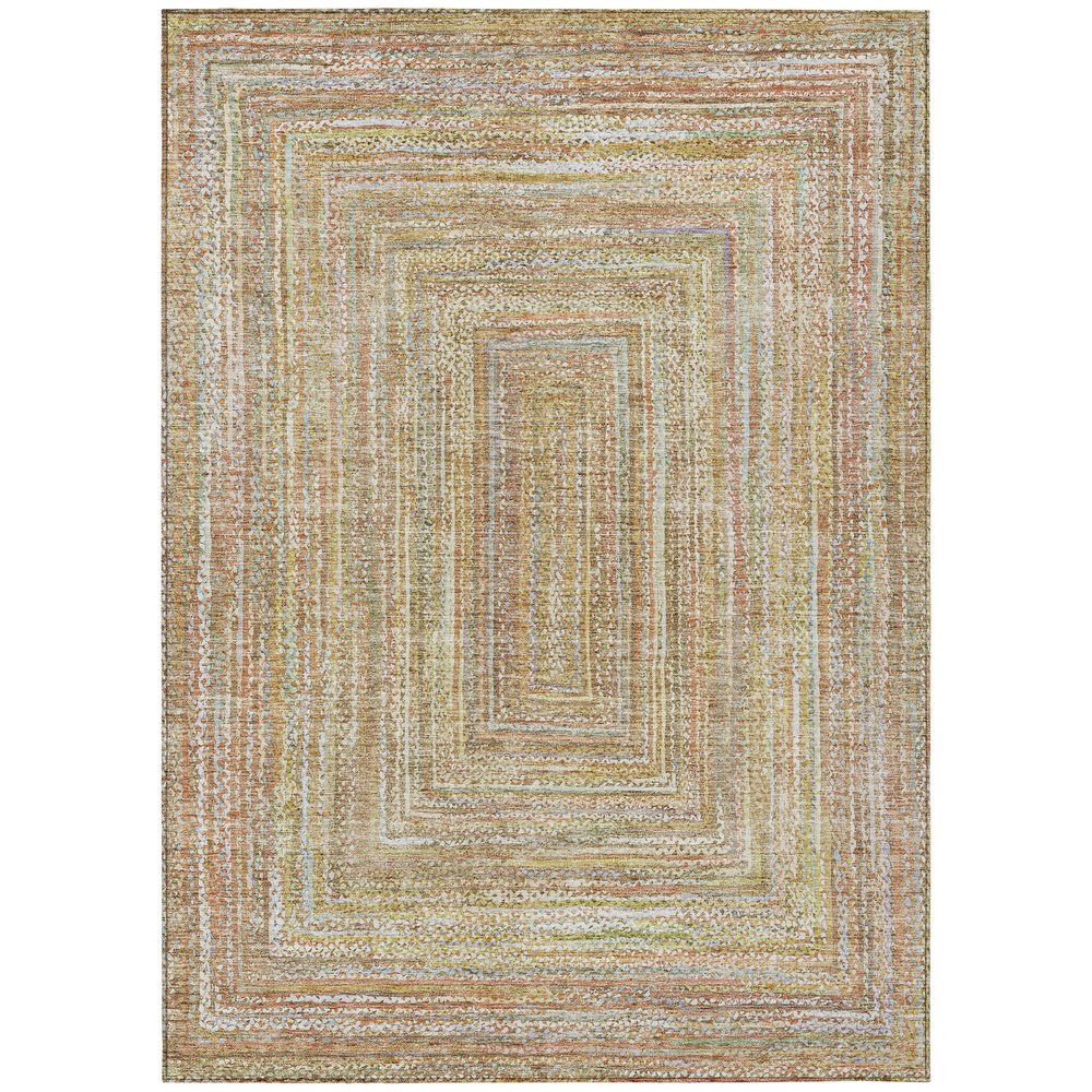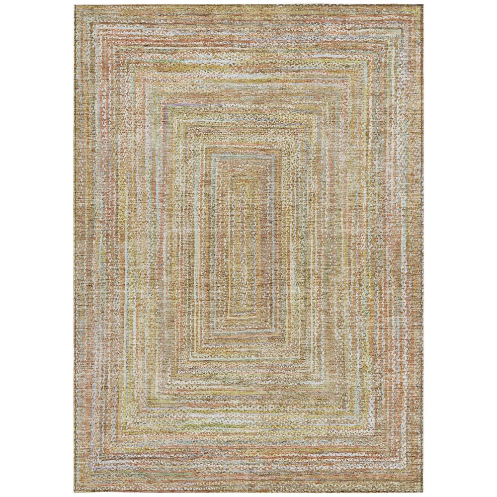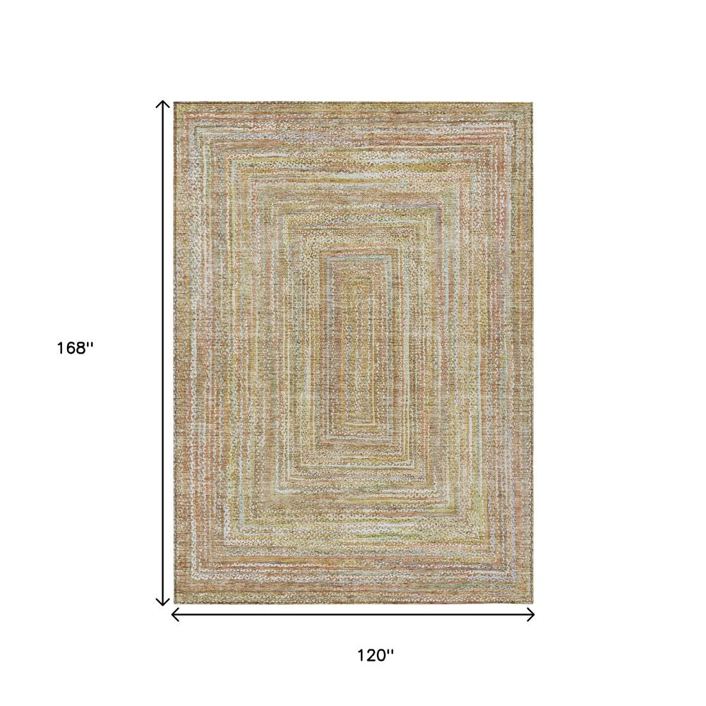 Add some artistry to your room with this 10-foot x 14-foot tan beige and gold geometric washable indoor outdoor area rug. This rectangle shaped rug features a geometric design that will work well both indoors or out. A classic shape marries with good looking design for your living room, hall, bedroom, porch, patio, or poolside. Ideal for outdoor spaces or high traffic areas with kids and pets, this rug is made from heavy duty polyester that is stain resistant to help repel water, dirt, and stains. Versatile in use, durable, and easy to maintain, this rug is an ideal solution to add a decorative and inviting touch to your indoor or outdoor space. 120-inch h x 168-inch w x 0.19-inch d.