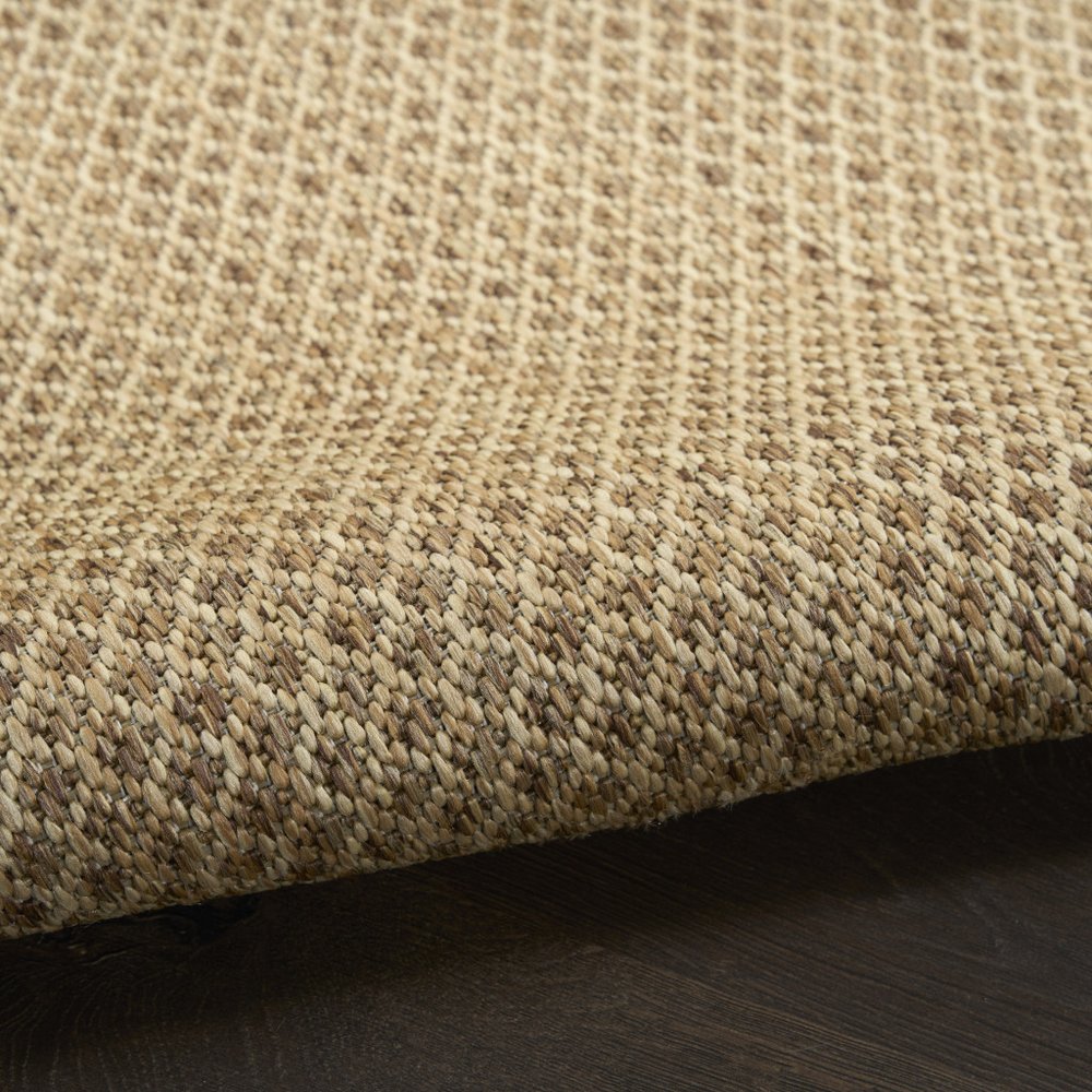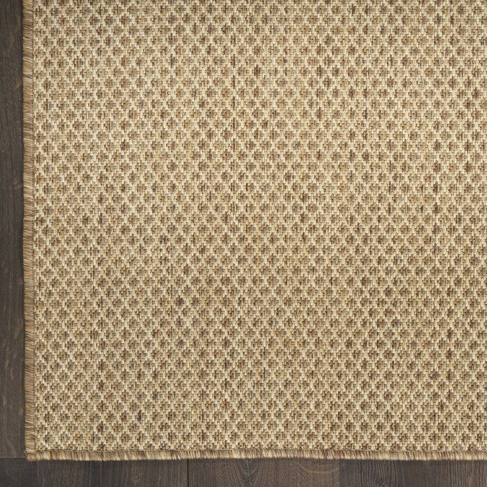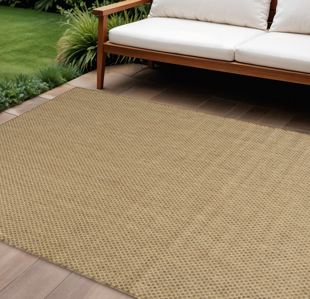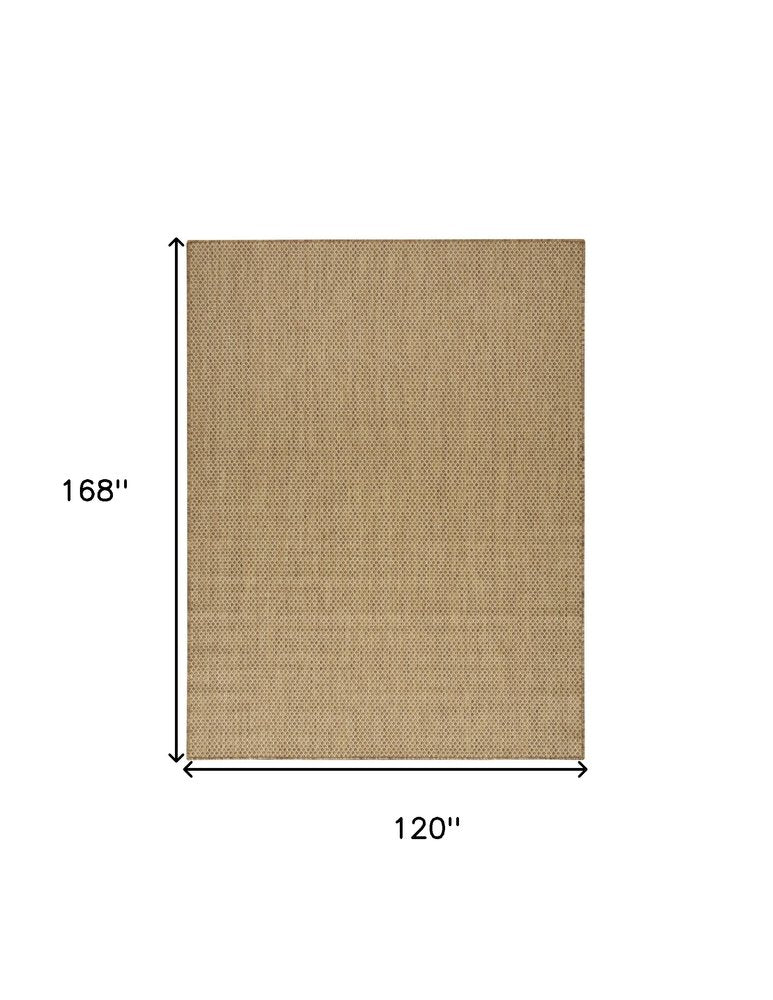 Set an inviting tone in your space with this 10-foot x 14-foot tan geometric indoor outdoor area rug. This rectangle shaped rug features a geometric design that will work well both indoors or out. A classic shape marries with good looking design for your living room, hall, bedroom, porch, patio, or poolside. Versatile in use, durable, and easy to maintain, this rug is an ideal solution to add a decorative and inviting touch to your indoor or outdoor space. 120-inch h x 168-inch w x 0.25-inch d.