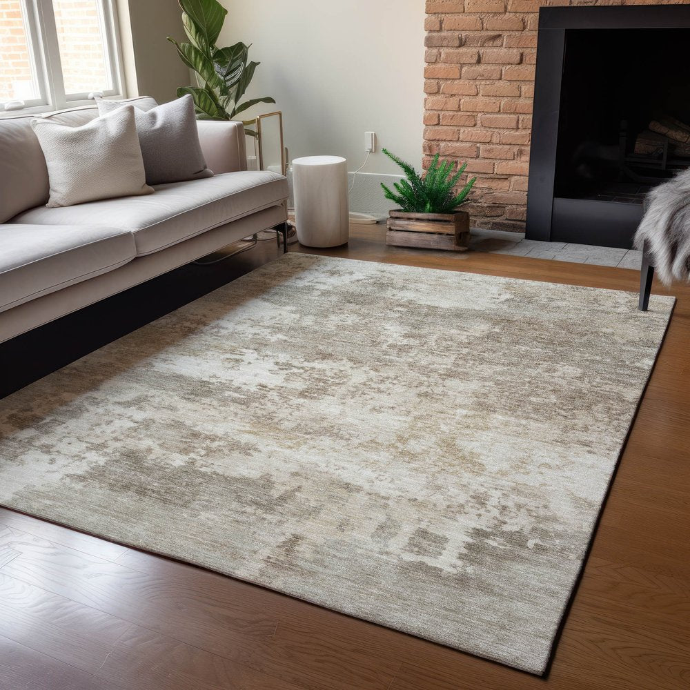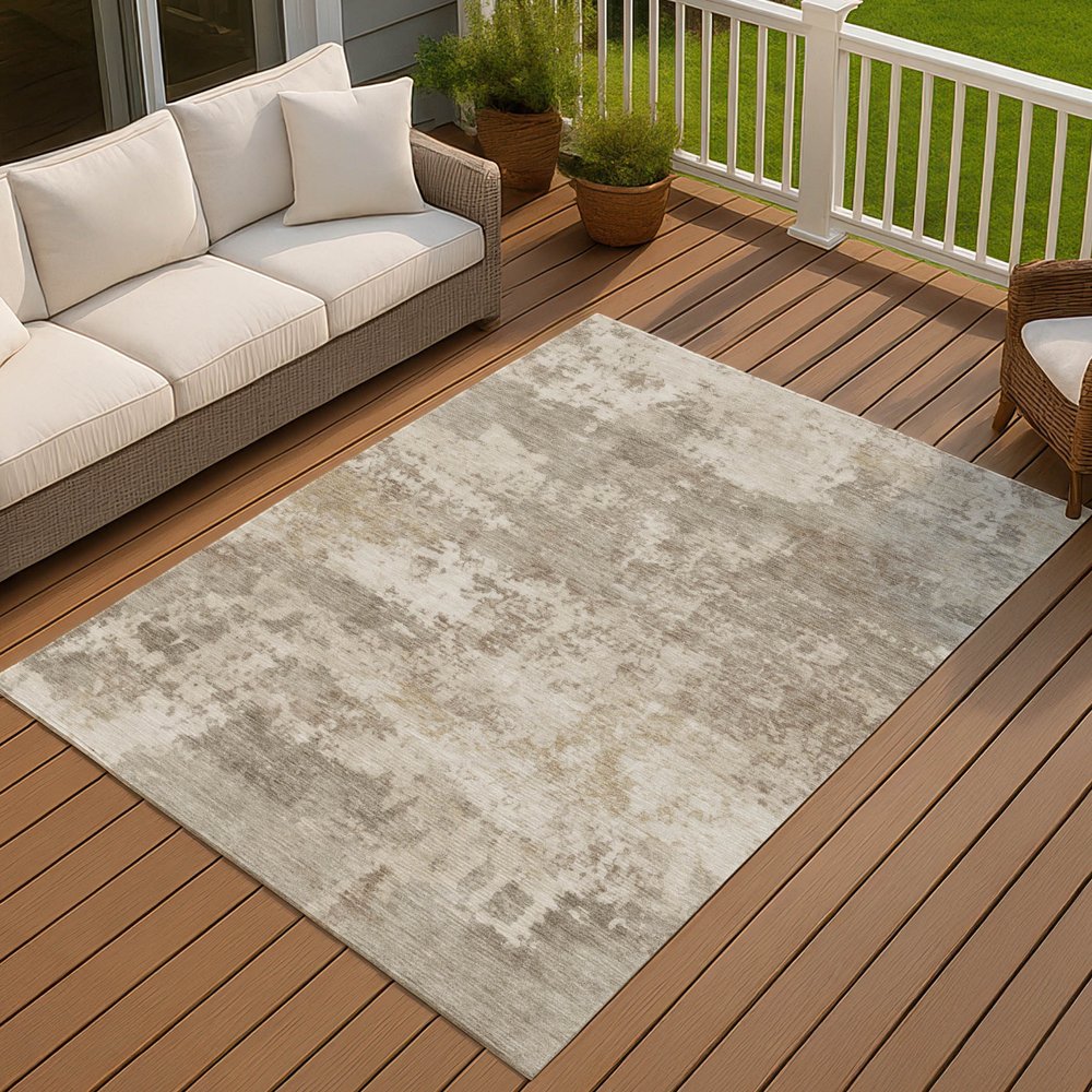 Add some artistry to your room with this 10-foot x 14-foot taupe and beige abstract washable indoor outdoor area rug. This rectangle shaped rug features a abstract design that will work well both indoors or out. A classic shape marries with good looking design for your living room, hall, bedroom, porch, patio, or poolside. Ideal for outdoor spaces or high traffic areas with kids and pets, this rug is made from heavy duty polyester that is stain resistant to help repel water, dirt, and stains. Versatile in use, durable, and easy to maintain, this rug is an ideal solution to add a decorative and inviting touch to your indoor or outdoor space. 120.00-inch h x 168.00-inch w x 0.19-inch d.
