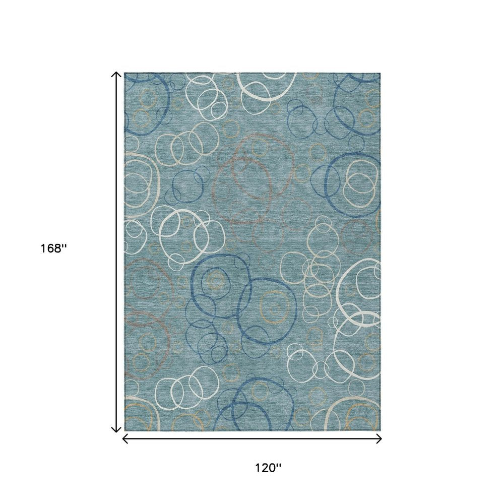 This 10-foot x 14-foot teal blue beige and ivory geometric washable indoor outdoor area rug, is a great way to add warmth to a room. This rectangle shaped rug features a geometric design that will work well both indoors or out. A classic shape marries with good looking design for your living room, hall, bedroom, porch, patio, or poolside. Ideal for outdoor spaces or high traffic areas with kids and pets, this rug is made from heavy duty polyester that is stain resistant to help repel water, dirt, and stains. Versatile in use, durable, and easy to maintain, this rug is an ideal solution to add a decorative and inviting touch to your indoor or outdoor space. 120.00-inch h x 168.00-inch w x 0.19-inch d.