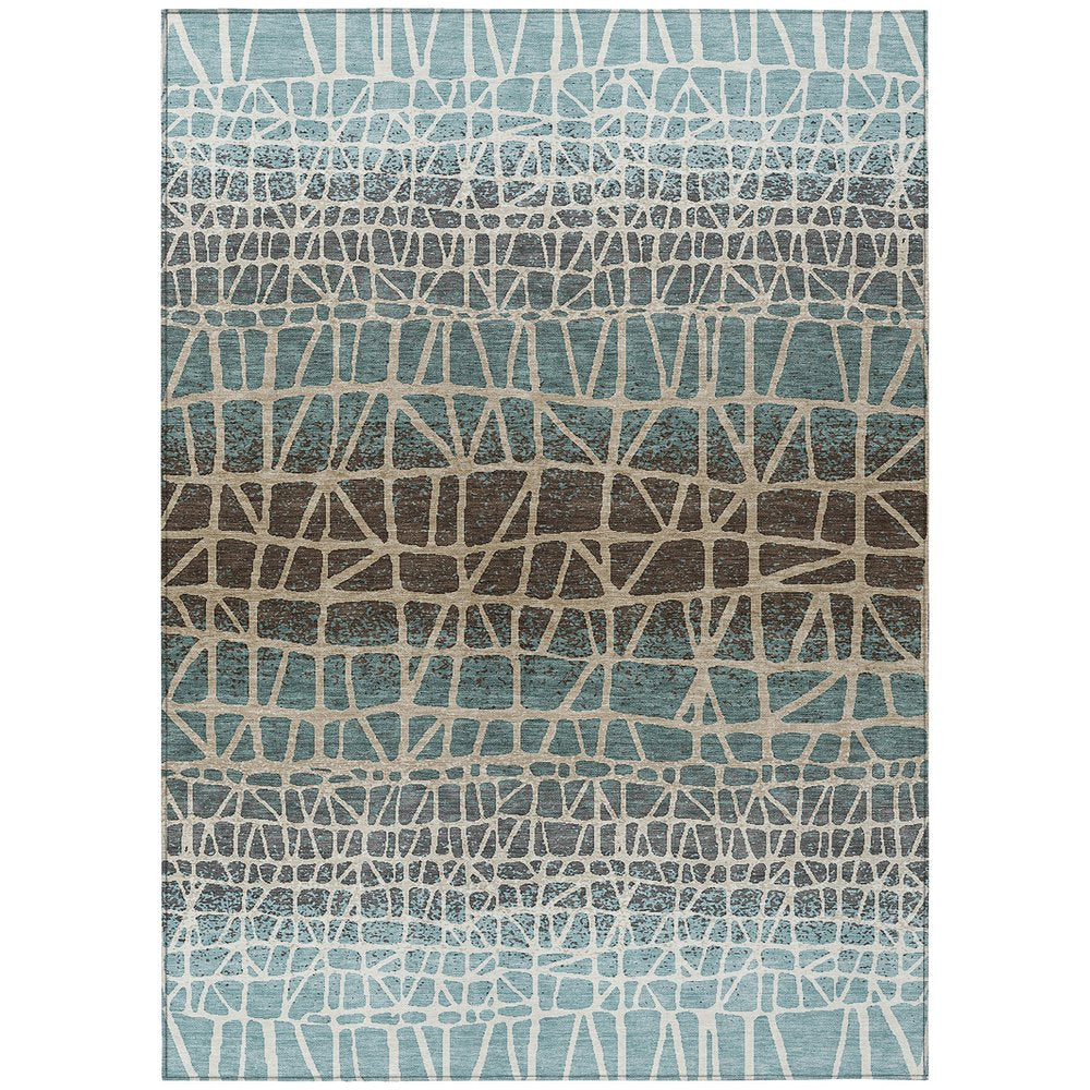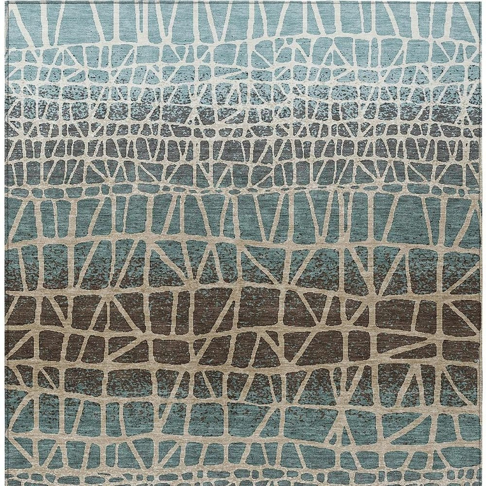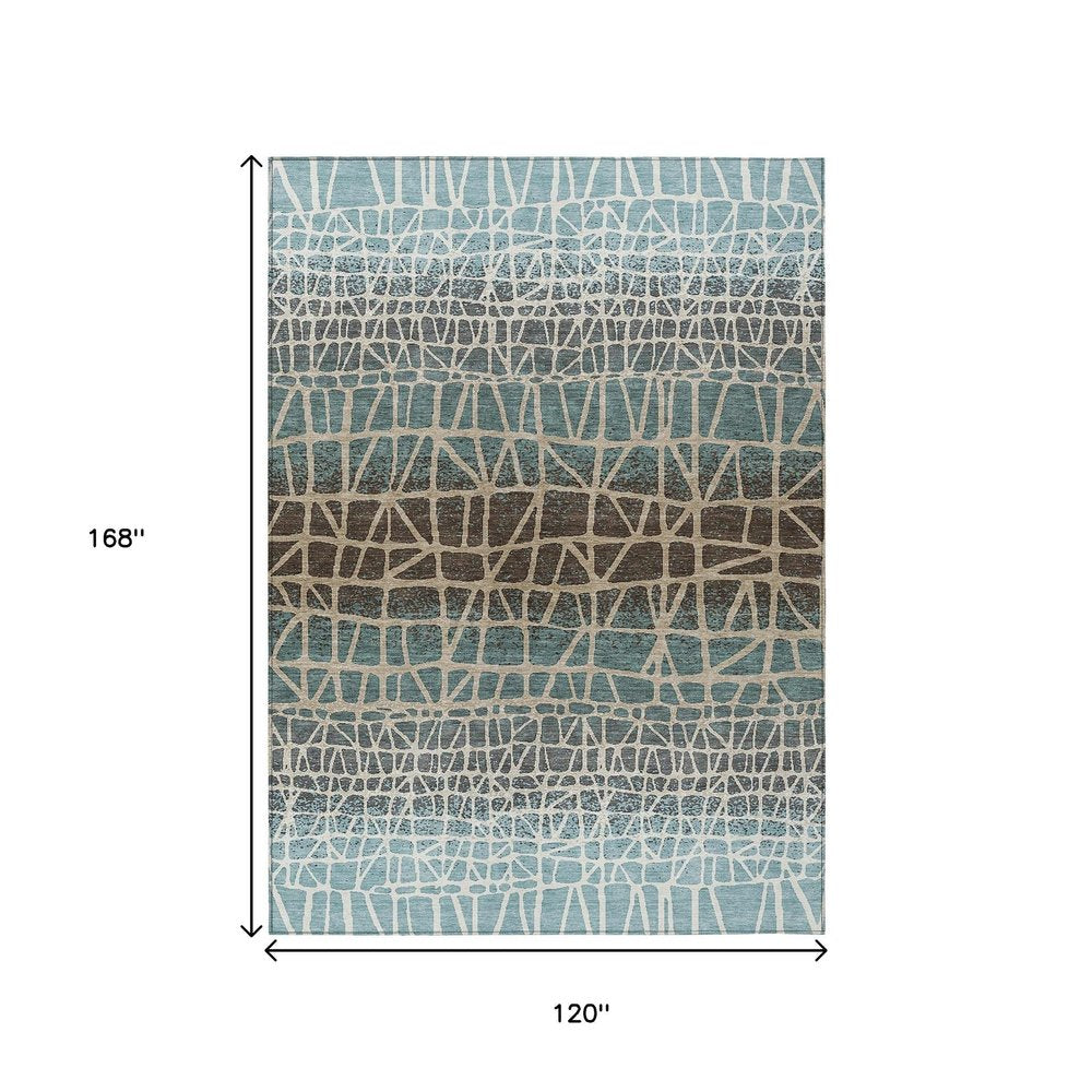 More from 10' X 14' Teal Blue Chocolate And Beige Geometric Washable Indoor Outdoor Area Rug Collection