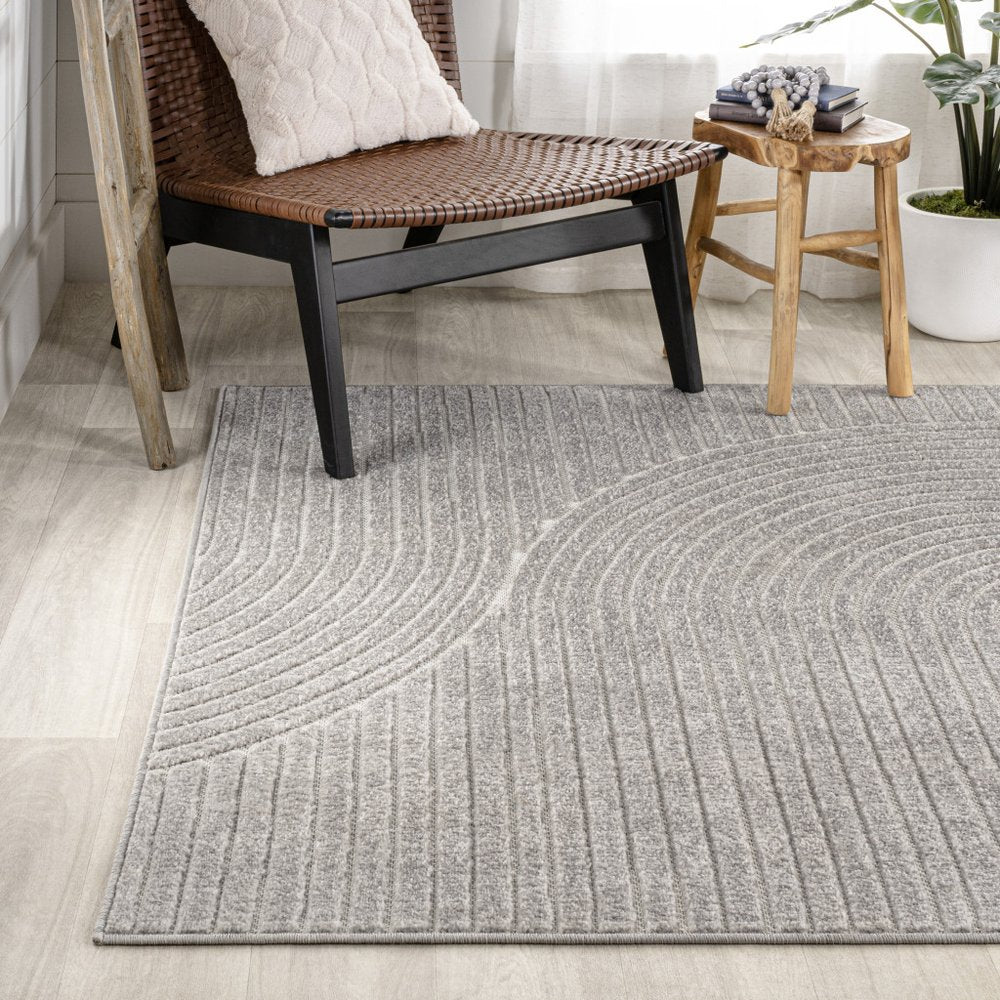 Set an inviting tone in your space with this 12-foot x 15-foot gray and ivory striped indoor outdoor area rug. This rectangle shaped rug features a striped design that will work well both indoors or out. A classic shape marries with good looking design for your living room, hall, bedroom, porch, patio, or poolside. Versatile in use, durable, and easy to maintain, this rug is an ideal solution to add a decorative and inviting touch to your indoor or outdoor space. 142.00-inch h x 180.00-inch w x 0.25-inch d.