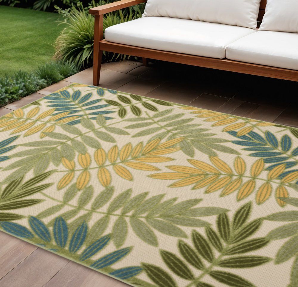 More from 12' X 15' Green Blue Yellow And Dark Green Palm Leaf Indoor Outdoor Area Rug Collection