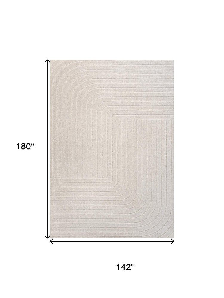 This 12-foot x 15-foot ivory and cream striped indoor outdoor area rug, is a great way to add warmth to a room. This rectangle shaped rug features a striped design that will work well both indoors or out. A classic shape marries with good looking design for your living room, hall, bedroom, porch, patio, or poolside. Versatile in use, durable, and easy to maintain, this rug is an ideal solution to add a decorative and inviting touch to your indoor or outdoor space. 142.00-inch h x 180.00-inch w x 0.25-inch d.