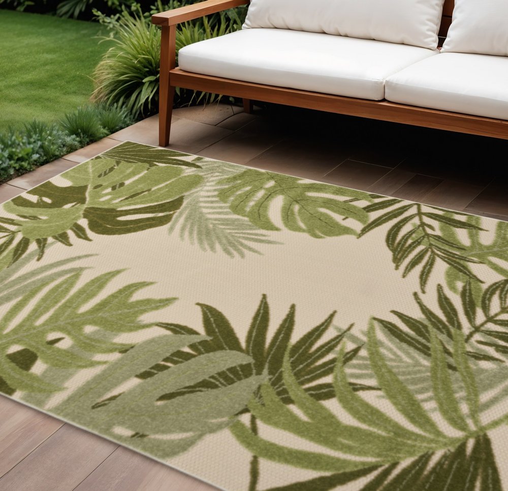 More from 12' X 15' Ivory And Green Palm Leaf Indoor Outdoor Area Rug Collection