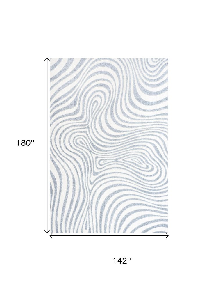 This 12-foot x 15-foot light blue and ivory abstract indoor outdoor area rug, is a great way to add warmth to a room. This rectangle shaped rug features a abstract design that will work well both indoors or out. A classic shape marries with good looking design for your living room, hall, bedroom, porch, patio, or poolside. Versatile in use, durable, and easy to maintain, this rug is an ideal solution to add a decorative and inviting touch to your indoor or outdoor space. 142.00-inch h x 180.00-inch w x 0.25-inch d.