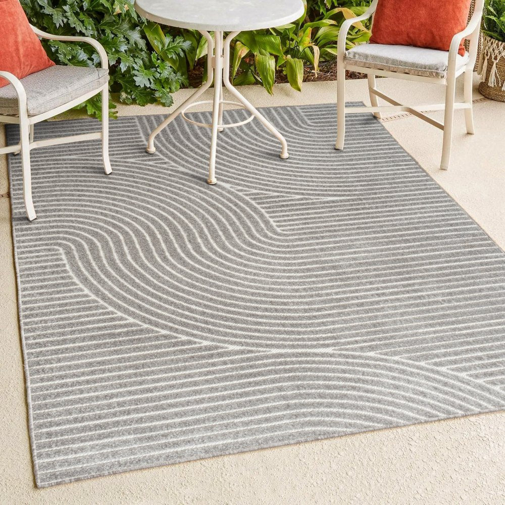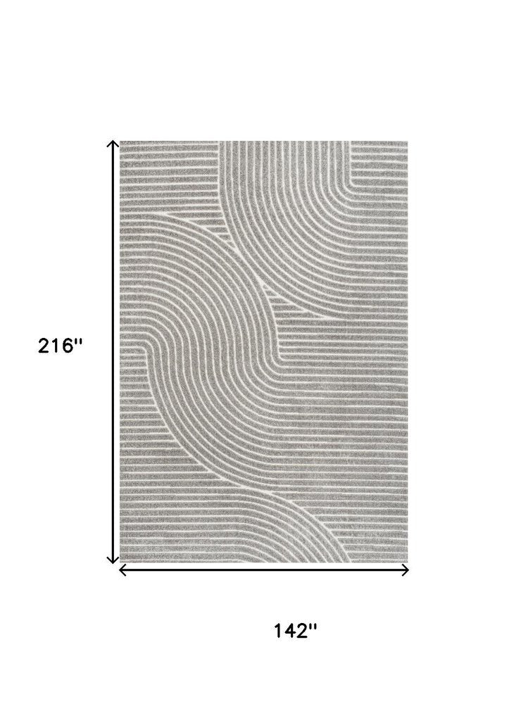 Add great coloration and comfortable texture to your space with this 12-foot x 18-foot gray and ivory striped indoor outdoor area rug. This rectangle shaped rug features a striped design that will work well both indoors or out. A classic shape marries with good looking design for your living room, hall, bedroom, porch, patio, or poolside. Makes a great way to dress up your patio, porch, or poolside, but also works well as a durable and easy to maintain option in the kitchen, family room, or mudroom. 142.00-inch h x 216.00-inch w x 0.25-inch d.