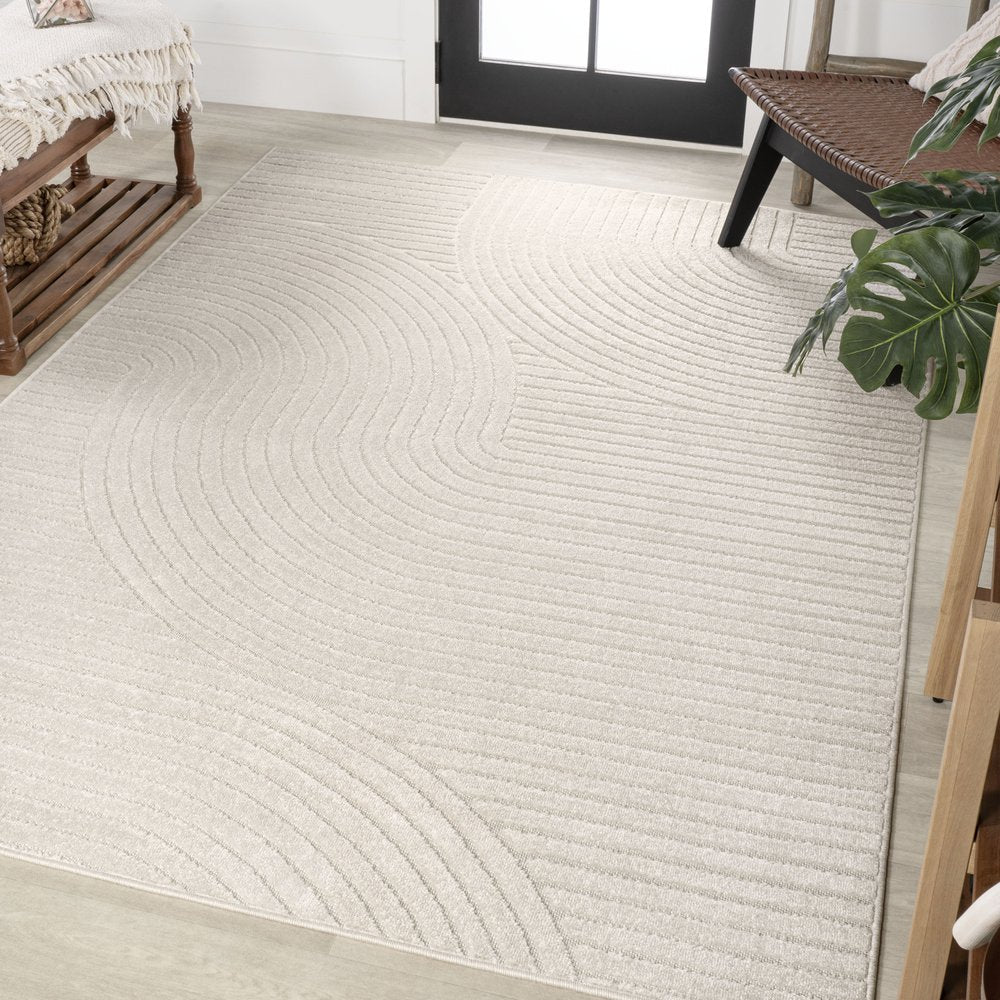 Add some artistry to your room with this 12-foot x 18-foot ivory and cream striped indoor outdoor area rug. This rectangle shaped rug features a striped design that will work well both indoors or out. A classic shape marries with good looking design for your living room, hall, bedroom, porch, patio, or poolside. Versatile in use, durable, and easy to maintain, this rug is an ideal solution to add a decorative and inviting touch to your indoor or outdoor space. 142.00-inch h x 216.00-inch w x 0.25-inch d.