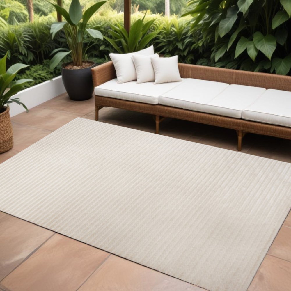 More from 12' X 18' Ivory And Cream Striped Indoor Outdoor Area Rug Collection