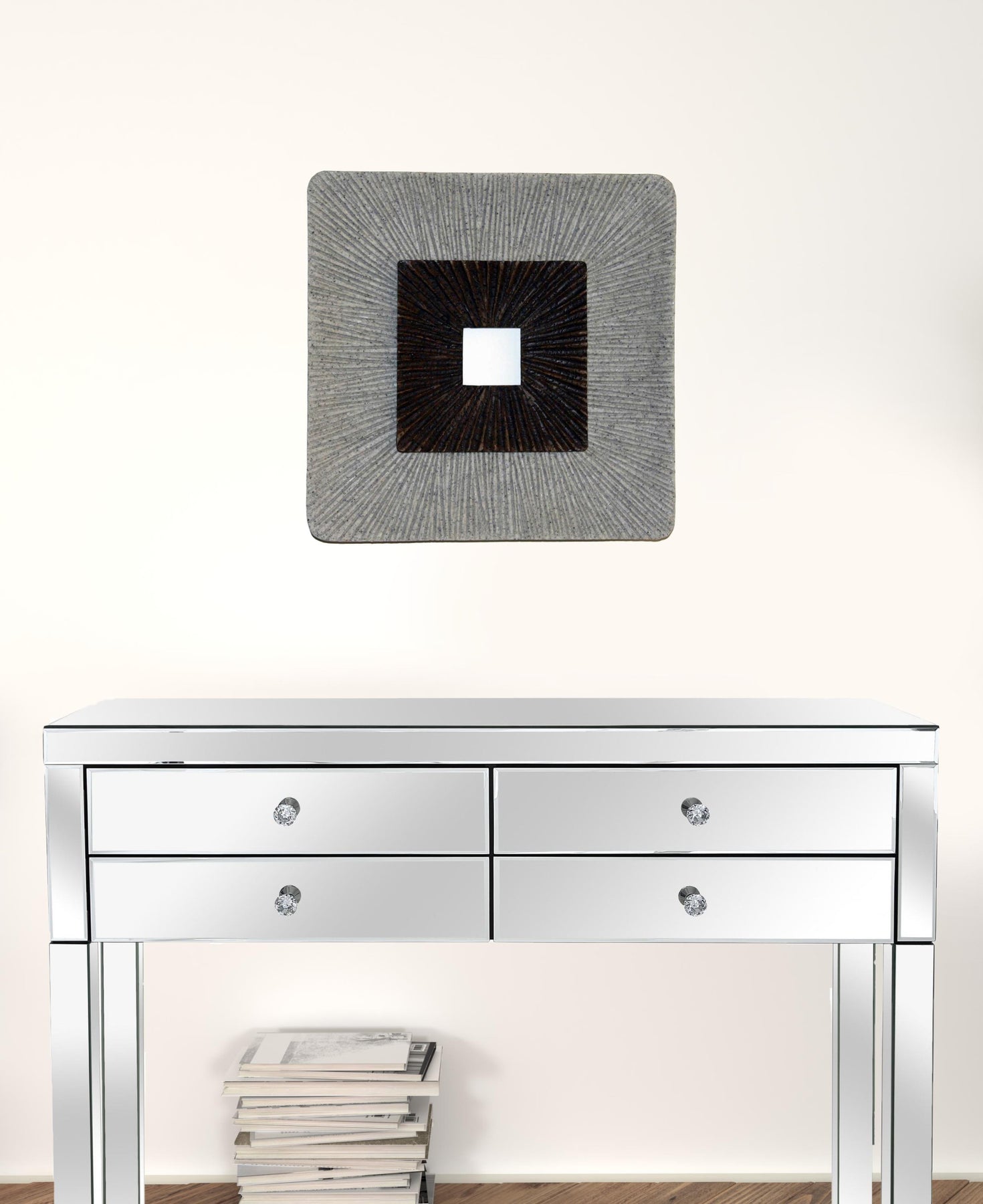 This square wall art features a captivating simple spiral modern and contemporary design that will put a tantalizing visual effect on your entire home setting. It comes in an incaved square design complemented with ribbed finish meant to seamlessly blend with existing decor in your home. This is a part of our wall art collection that is perfectly crafted to aesthetically wow you and your guests for many years to come. 19" X 19" X 2.5"