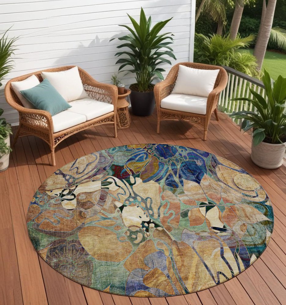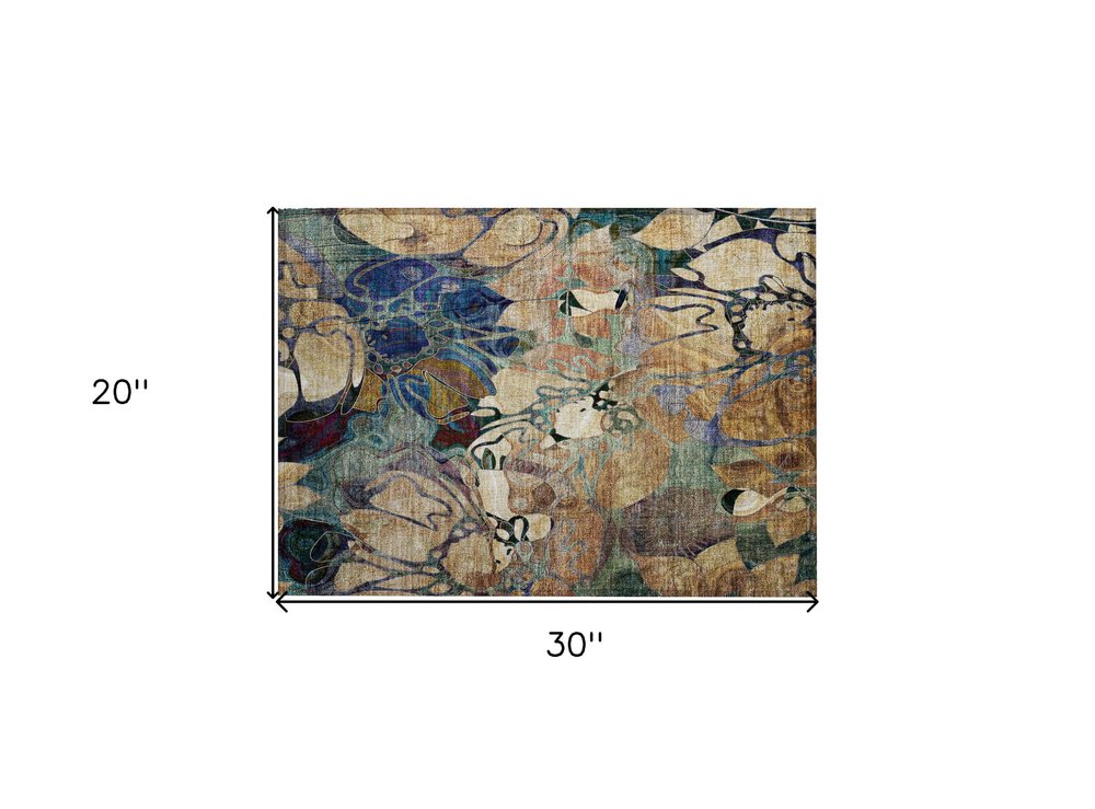 2' X 3' Beige and Blue Abstract Washable Indoor Outdoor Area Rug
