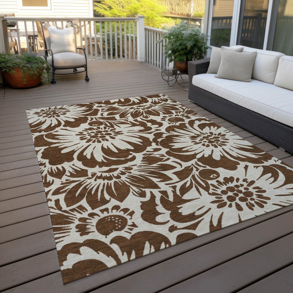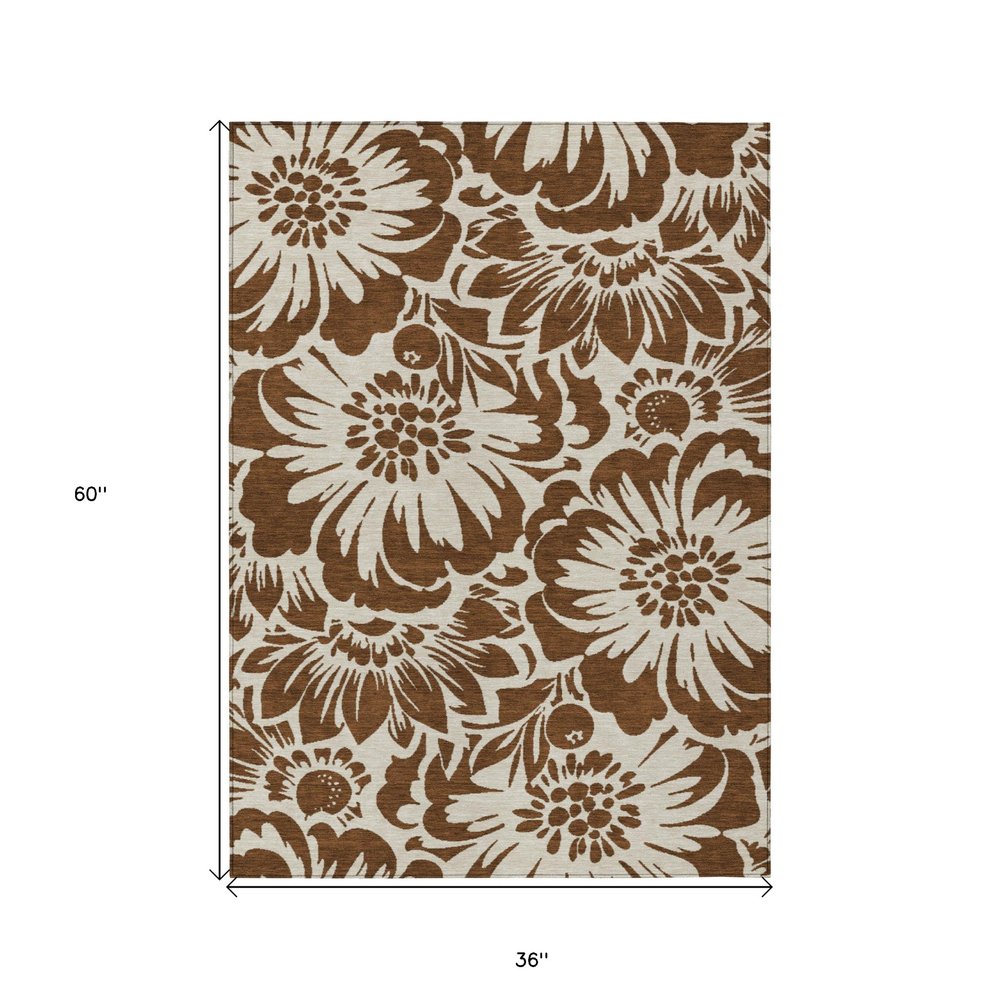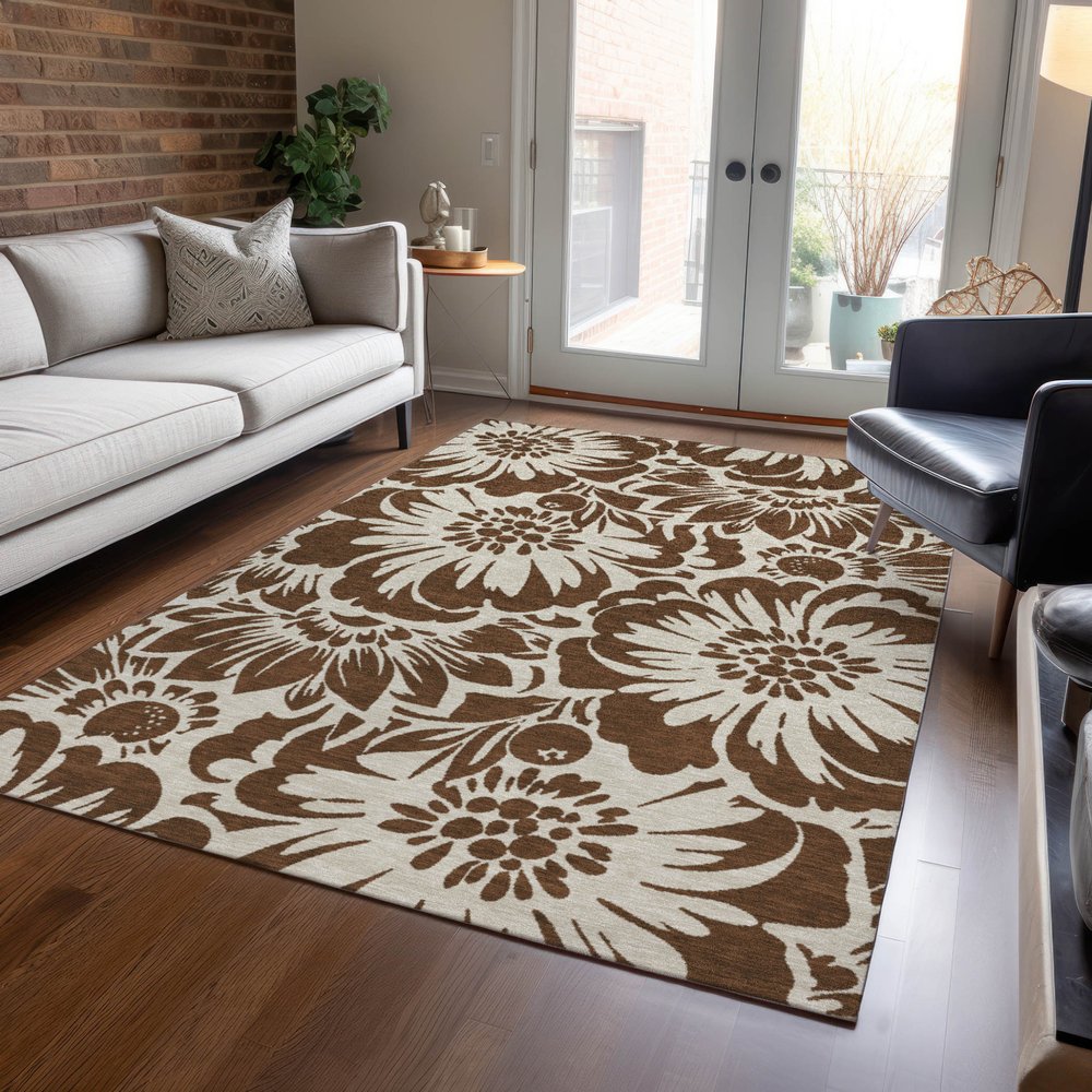 Add great coloration and comfortable texture to your space with this 2-foot x 3-foot brown and ivory floral washable non skid indoor outdoor area rug. This rectangle shaped rug features a floral design in brown and ivory to give it visual interest. A classic shape marries with good looking design for your space ideal for spaces with kids and pets, this rug is stain resistant to help repel stains and spilled liquids. Area rugs help to give warmth and sense of home to your space. 20-inch H x 30-inch W x 0.19-inch D