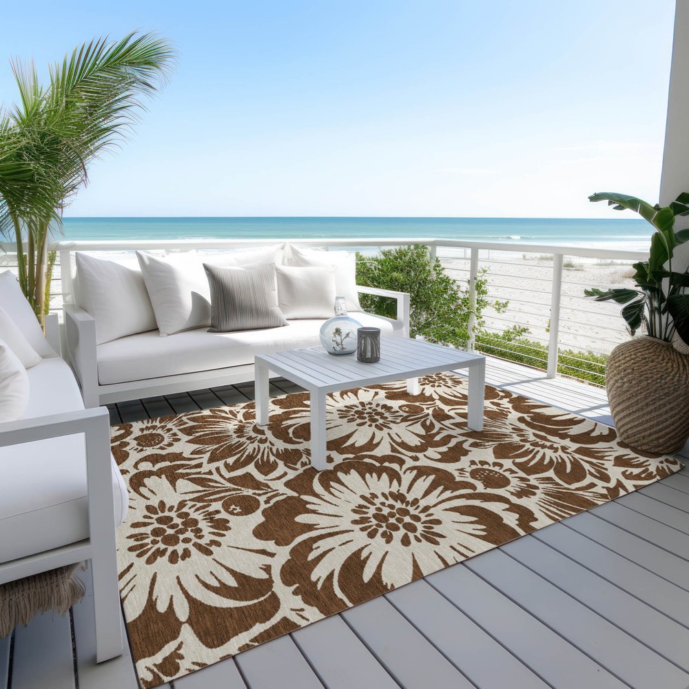 More from 2' X 3' Brown and Ivory Floral Washable Non Skid Indoor Outdoor Area Rug Collection