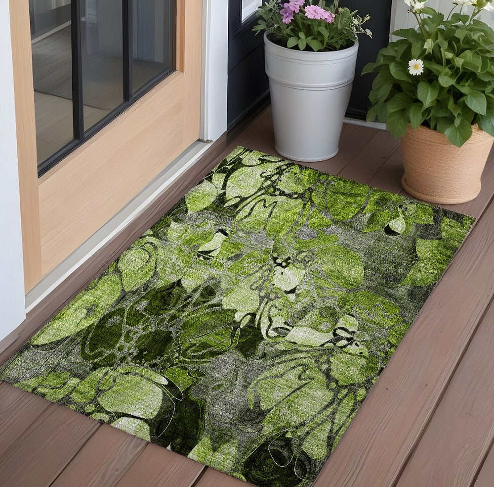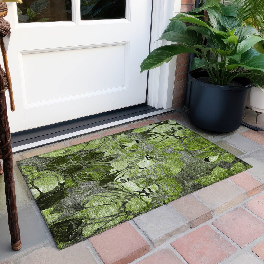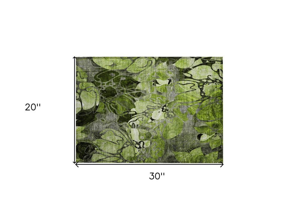 More from 2' X 3' Fern Green and Gray Floral Washable Non Skid Indoor Outdoor Area Rug Collection