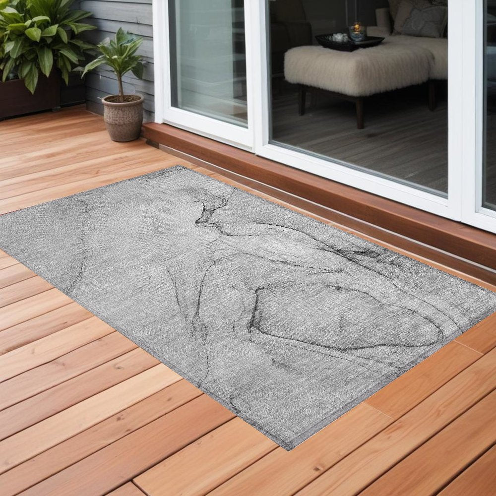 2' X 3' Gray Abstract Washable Non Skid Indoor Outdoor Area Rug