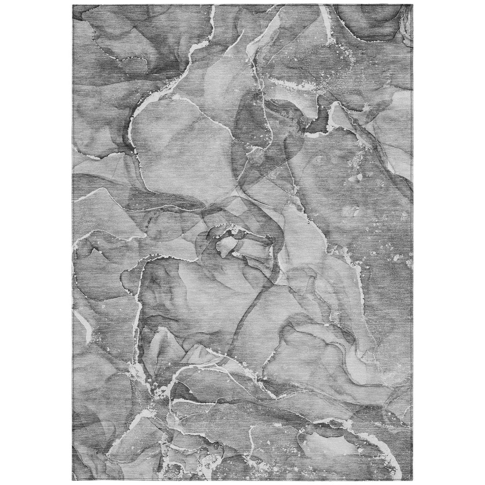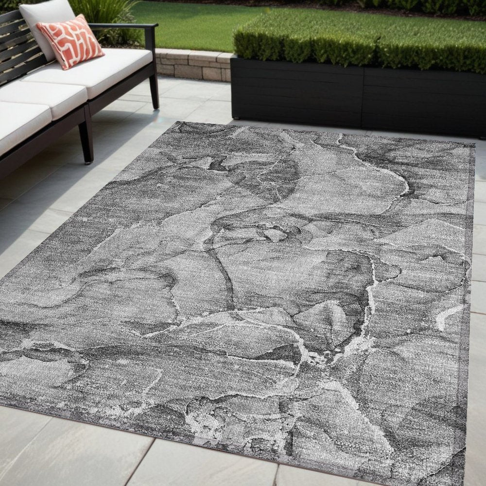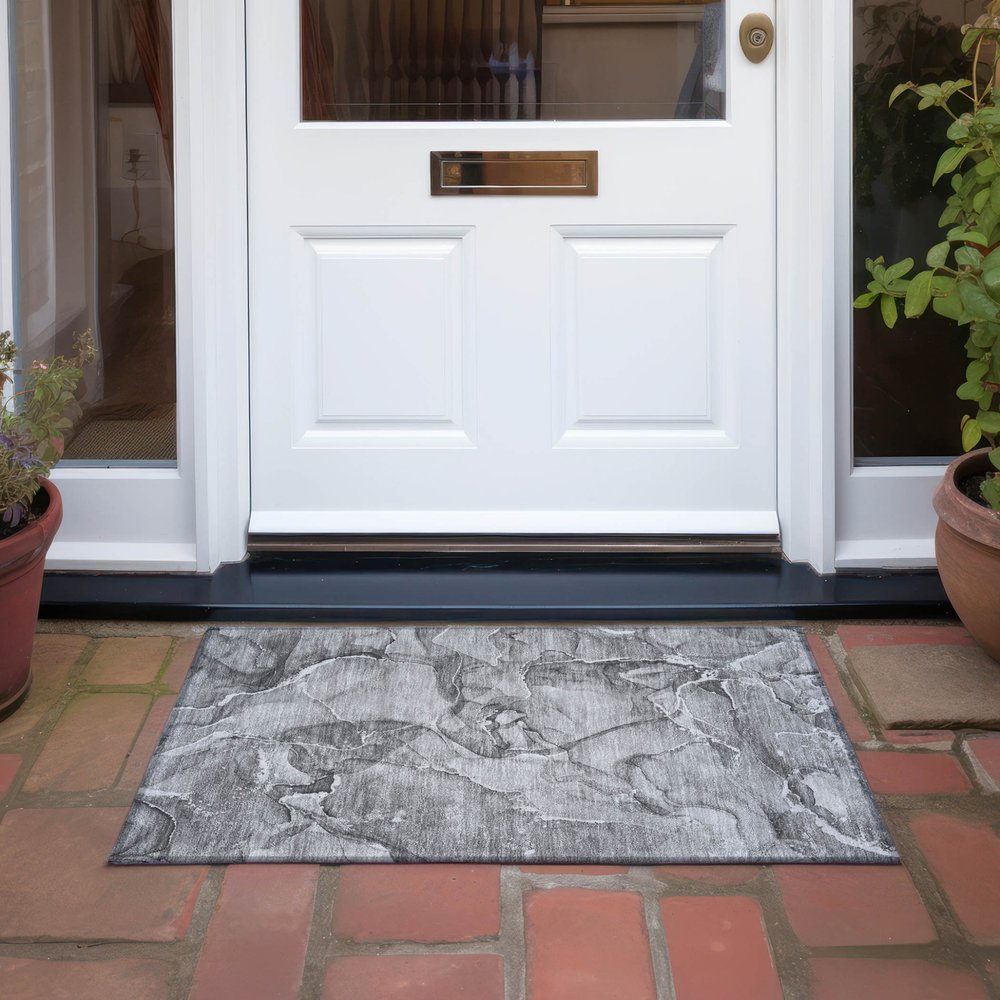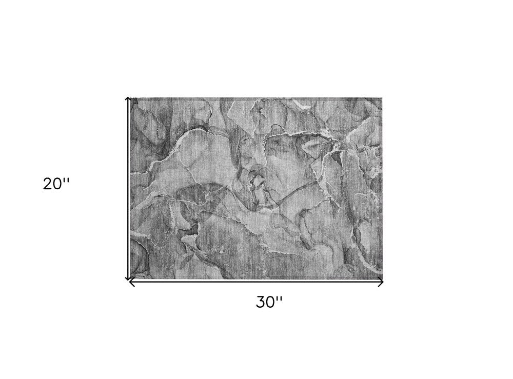 2' X 3' Gray and Ivory Abstract Washable Non Skid Indoor Outdoor Area Rug