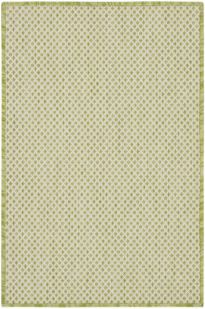 Set an inviting tone in your space with this 2-foot x 3-foot ivory and green geometric indoor outdoor area rug. This rectangle shaped rug features a geometric design that will work well both indoors or out. A classic shape marries with good looking design for your living room, hall, bedroom, porch, patio, or poolside. Versatile in use, durable, and easy to maintain, this rug is an ideal solution to add a decorative and inviting touch to your indoor or outdoor space. 24-inch h x 36-inch w x 0.25-inch d.