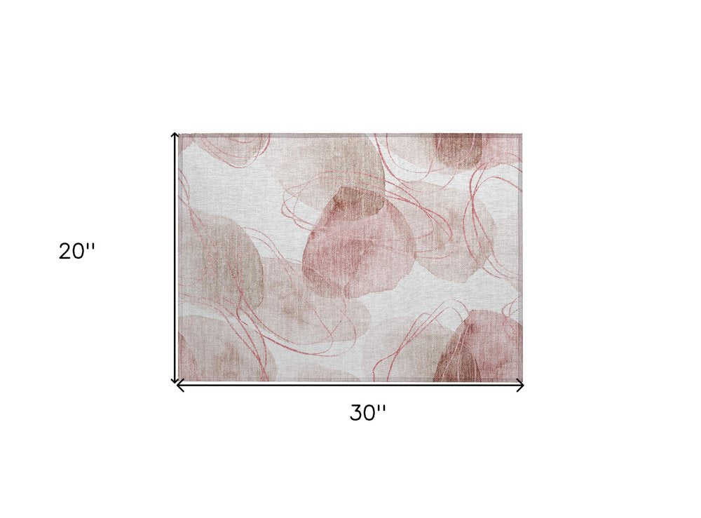 2' X 3' Merlot and Ivory Abstract Washable Non Skid Indoor Outdoor Area Rug