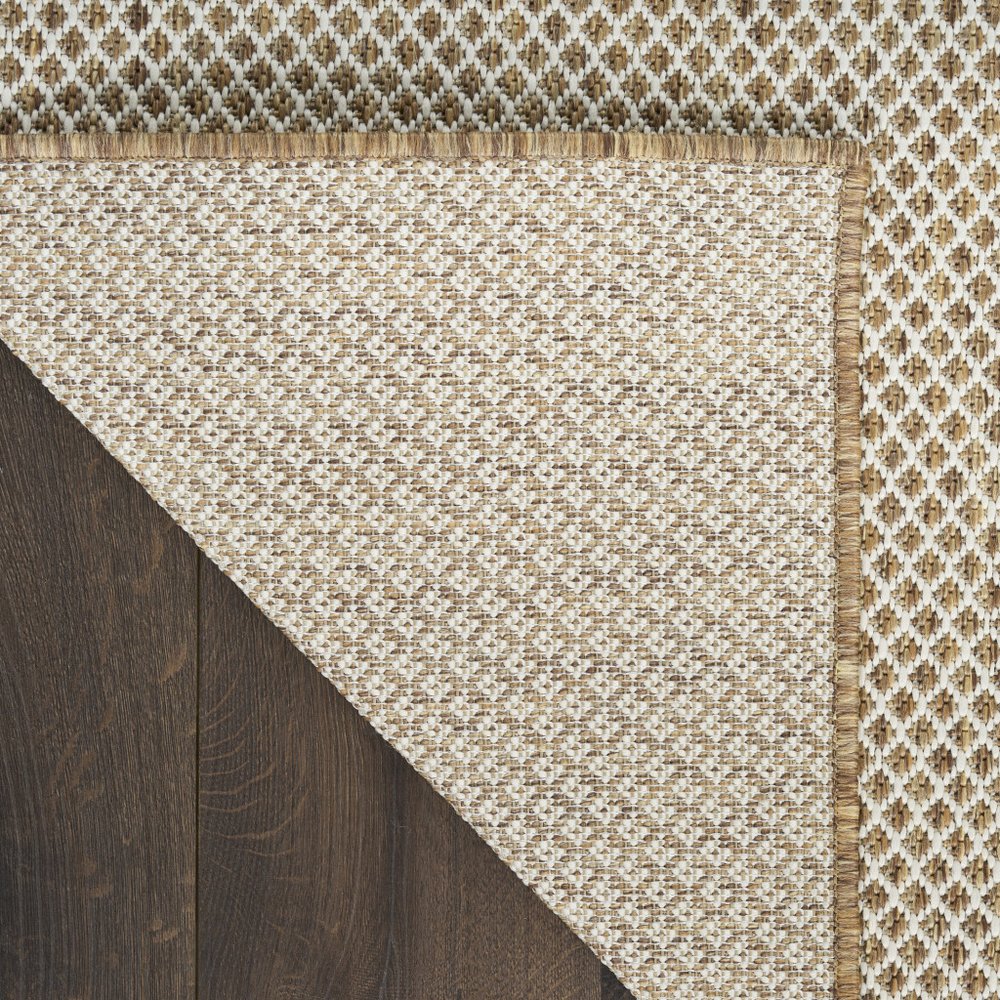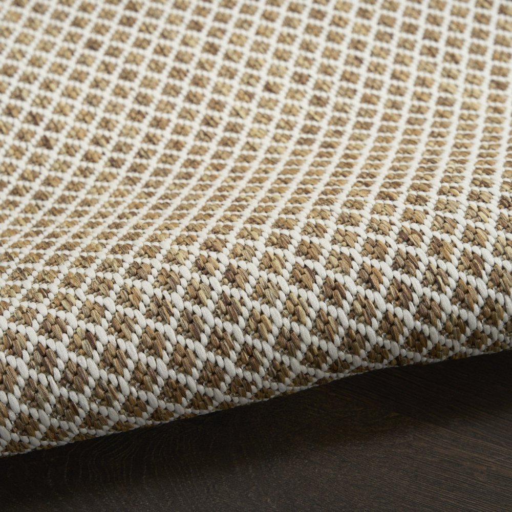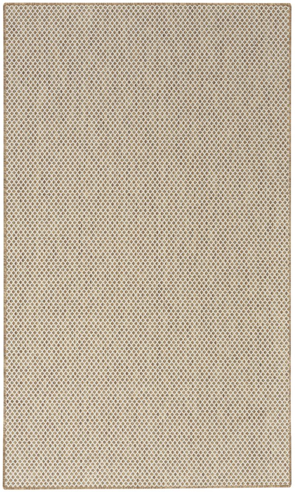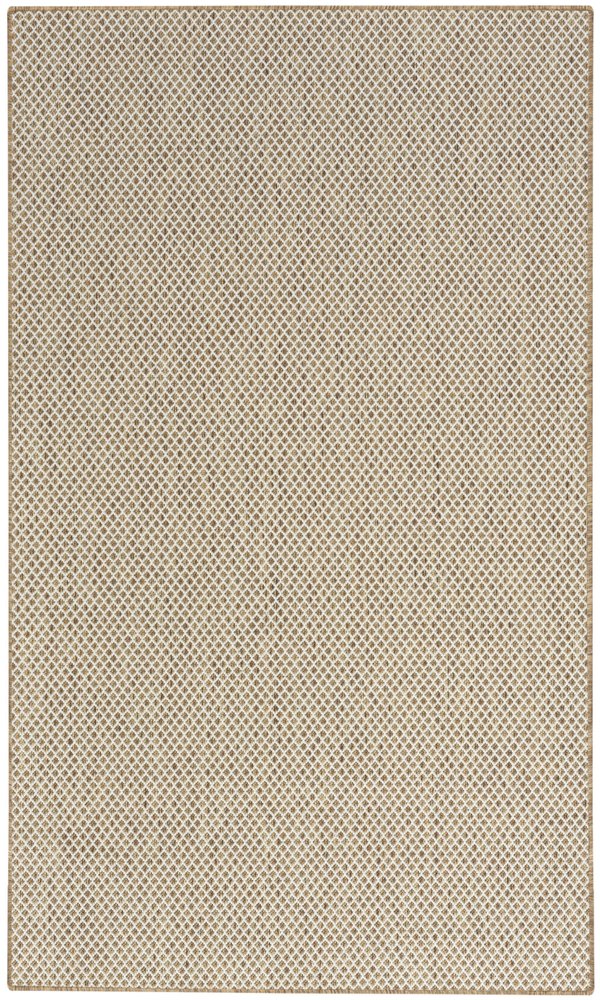 Add some artistry to your room with this 2-foot x 3-foot natural and ivory geometric indoor outdoor area rug. This rectangle shaped rug features a geometric design that will work well both indoors or out. A classic shape marries with good looking design for your living room, hall, bedroom, porch, patio, or poolside. Versatile in use, durable, and easy to maintain, this rug is an ideal solution to add a decorative and inviting touch to your indoor or outdoor space. 24-inch h x 36-inch w x 0.25-inch d.
