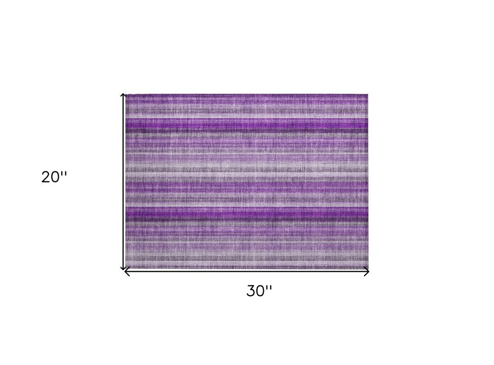 This 2-foot x 3-foot purple striped washable stain resistant non skid indoor outdoor area rug, is a great way to add warmth to a room. This rectangle shaped rug features a striped design in purple to give it visual interest. A classic shape marries with good looking design for your space ideal for spaces with kids and pets, this rug is stain resistant to help repel stains and spilled liquids. Area rugs help to give warmth and sense of home to your space. 20-inch H x 30-inch W x 0.19-inch D