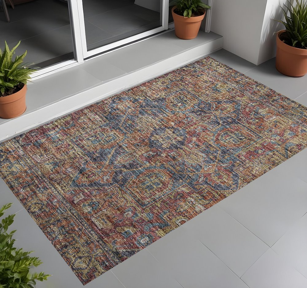 More from 2' X 3' Red Orange and Blue Oriental Washable Non Skid Indoor Outdoor Area Rug Collection
