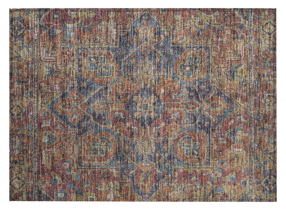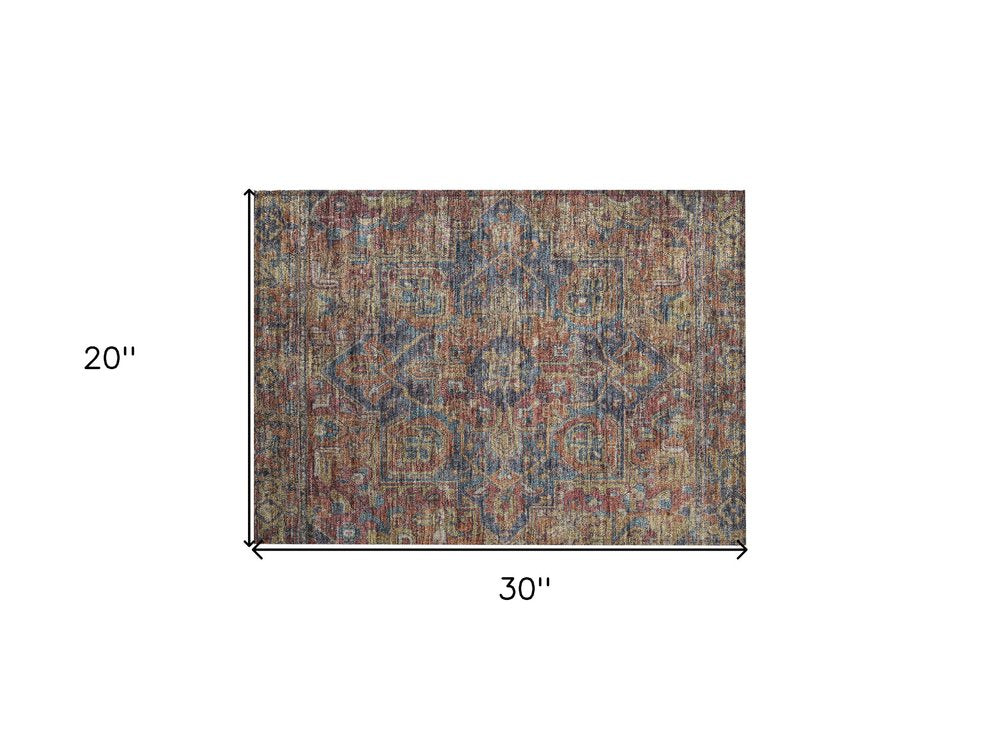 Add some artistry to your room with this 2-foot x 3-foot red orange and blue oriental washable stain resistant non skid indoor outdoor area rug. This rectangle shaped rug features a oriental design in red orange and blue to give it visual interest. A classic shape marries with good looking design for your space ideal for spaces with kids and pets, this rug is stain resistant to help repel stains and spilled liquids. Area rugs help to give warmth and sense of home to your space. 20-inch H x 30-inch W x 0.19-inch D