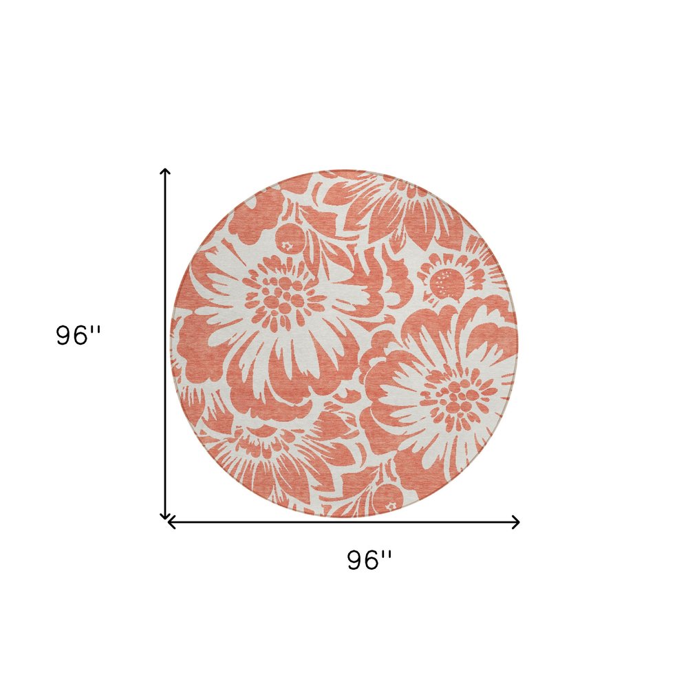 2' X 3' Salmon and Ivory Floral Washable Non Skid Indoor Outdoor Area Rug