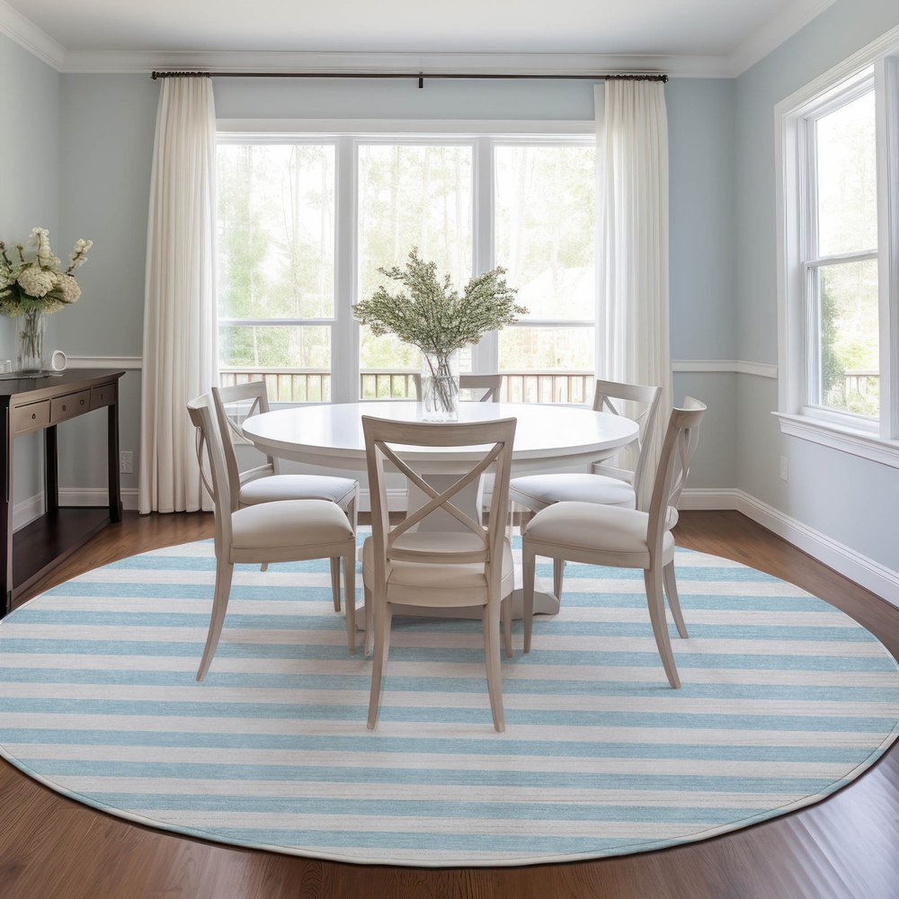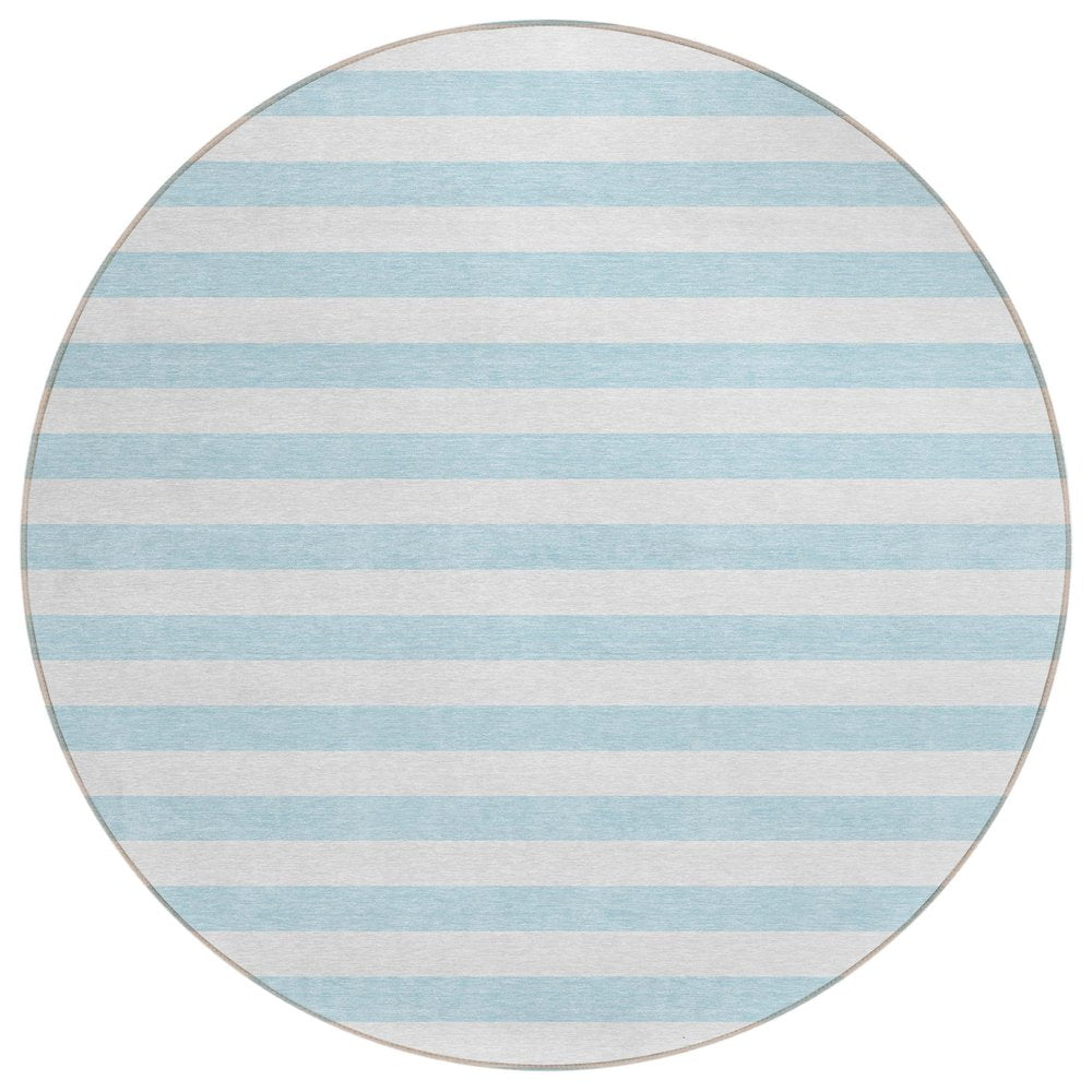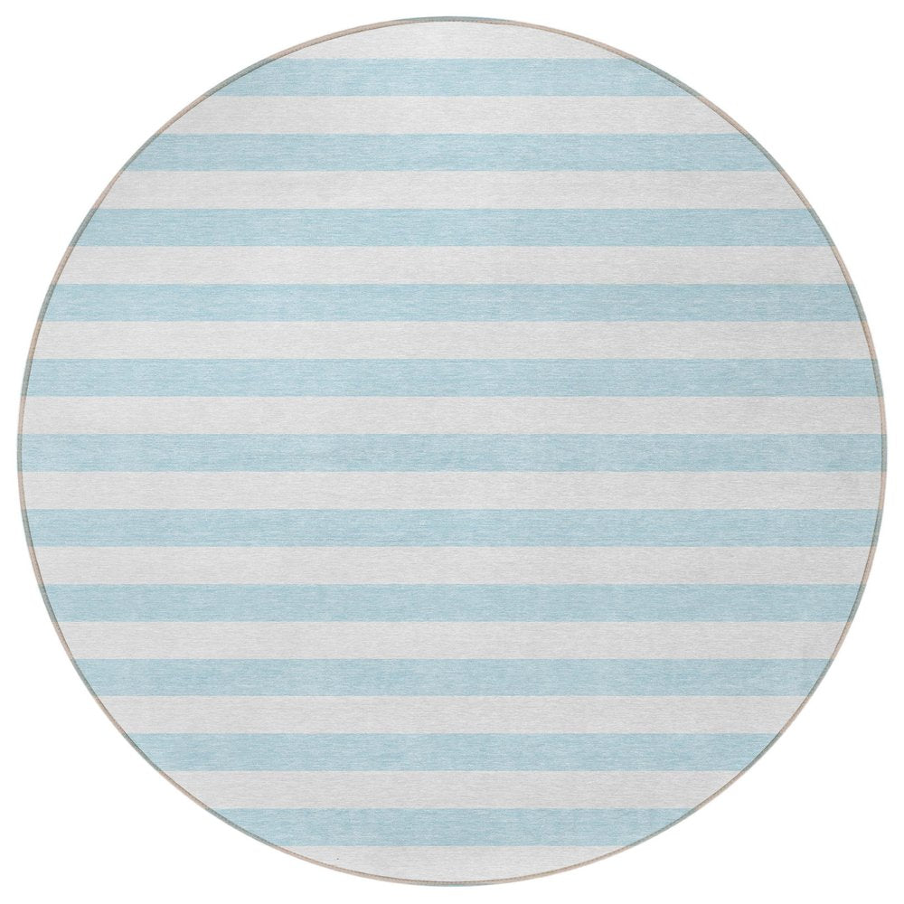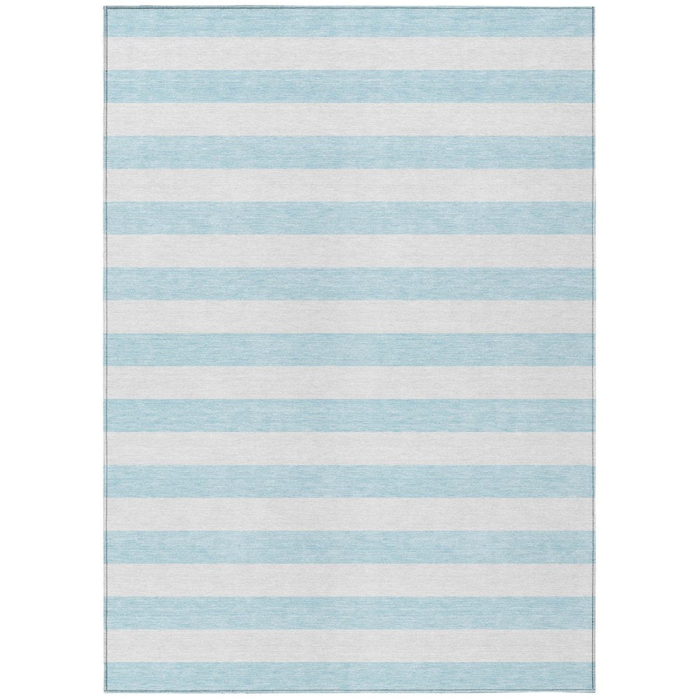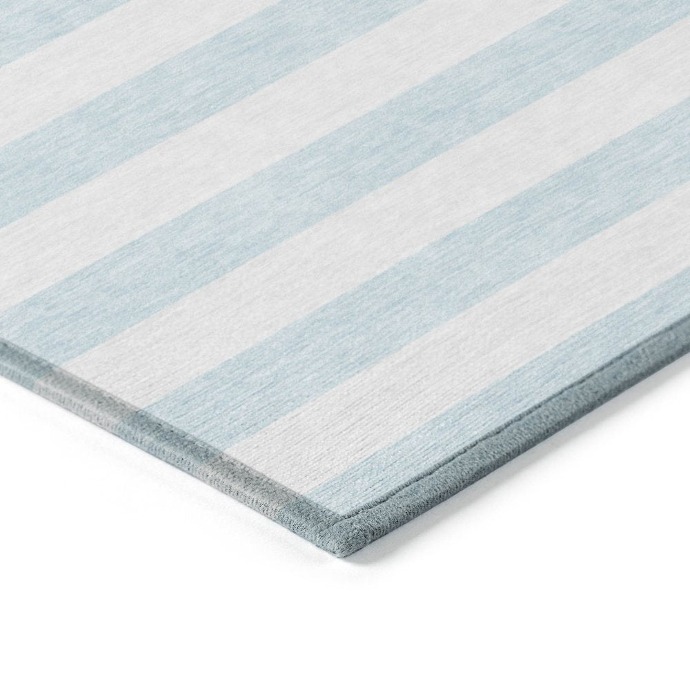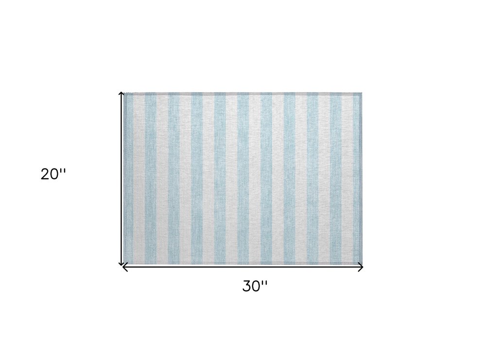 Add some artistry to your room with this 2-foot x 3-foot sky blue striped washable stain resistant non skid indoor outdoor area rug. This rectangle shaped rug features a striped design in sky blue to give it visual interest. A classic shape marries with good looking design for your space ideal for spaces with kids and pets, this rug is stain resistant to help repel stains and spilled liquids. Area rugs help to give warmth and sense of home to your space. 20-inch H x 30-inch W x 0.19-inch D
