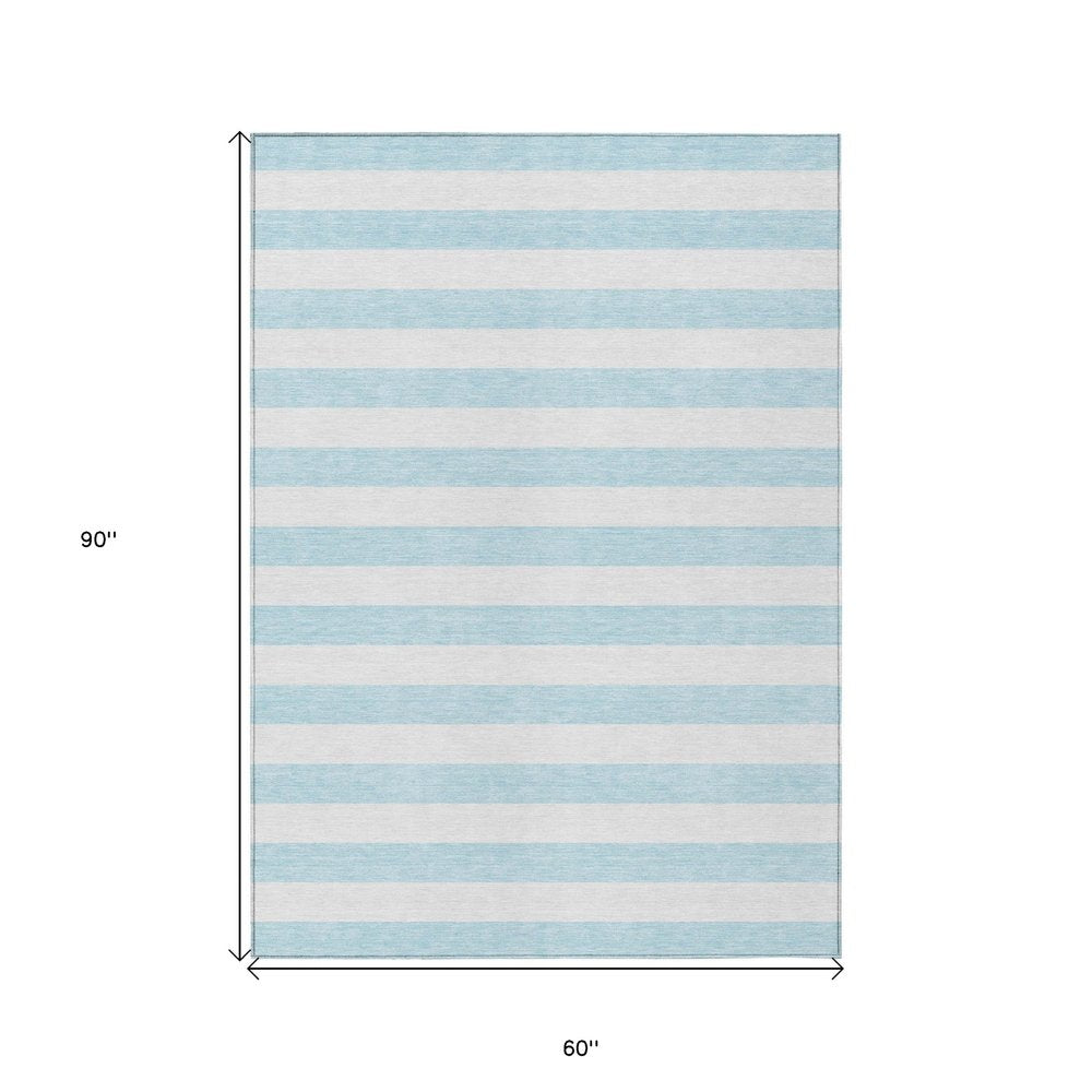 More from 2' X 3' Sky Blue Striped Washable Non Skid Indoor Outdoor Area Rug Collection