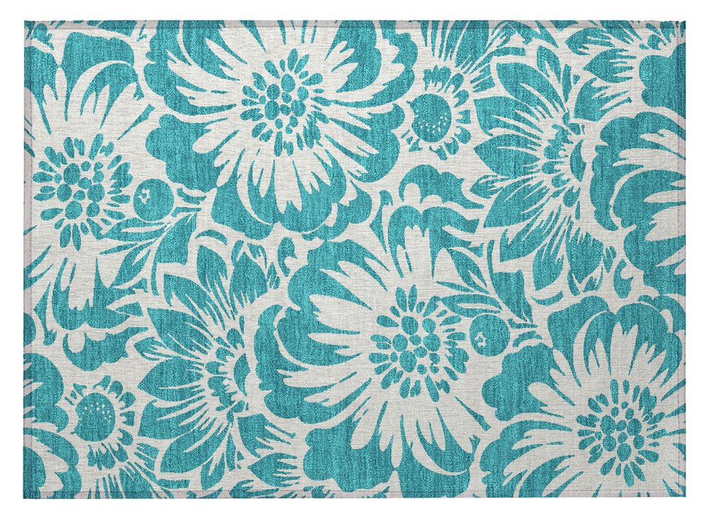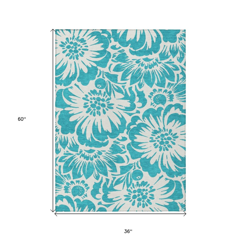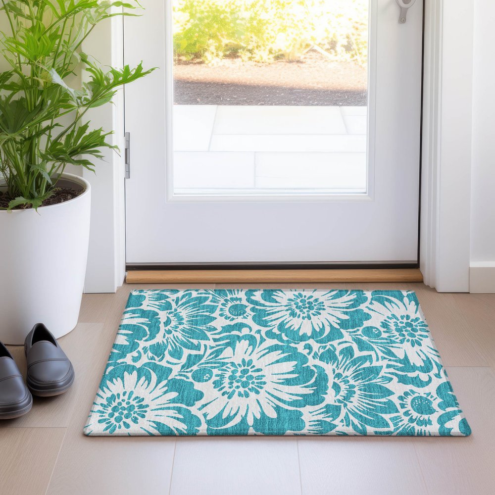 More from 2' X 3' Teal and Ivory Floral Washable Non Skid Indoor Outdoor Area Rug Collection