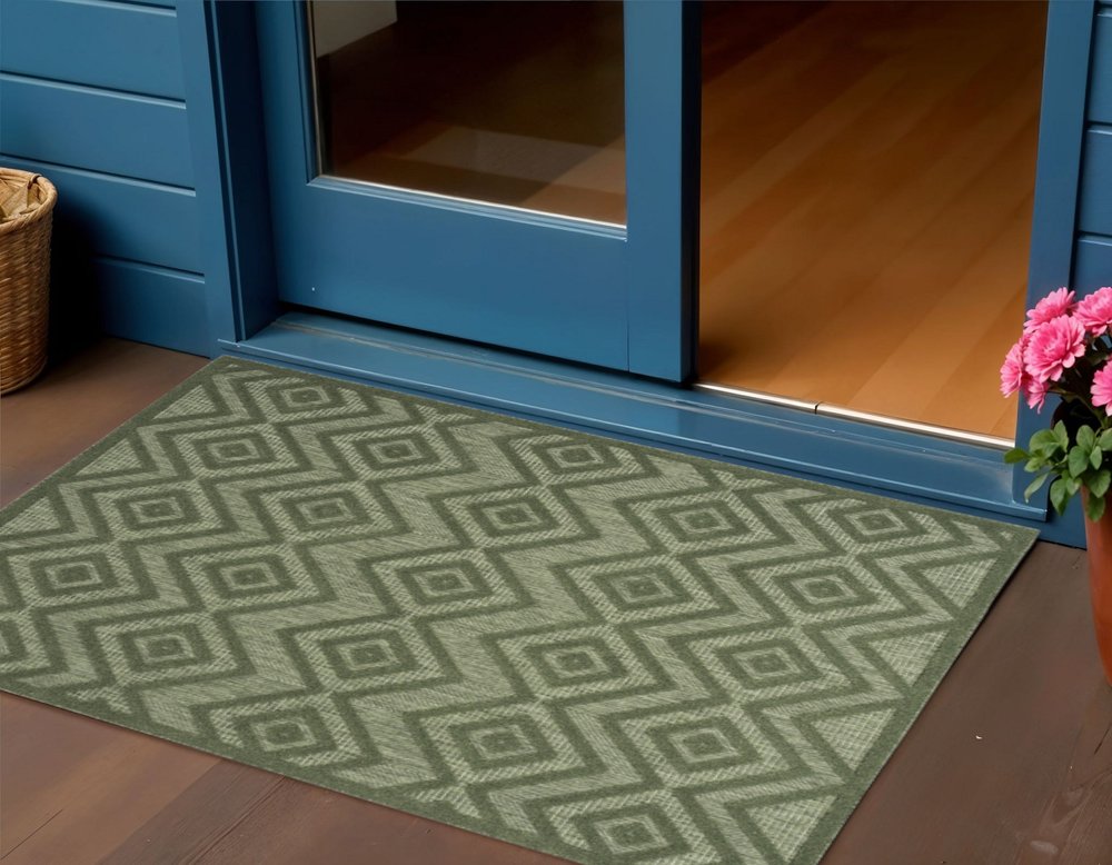More from 2' X 4' Dark Green And Light Green Geometric Indoor Outdoor Area Rug Collection