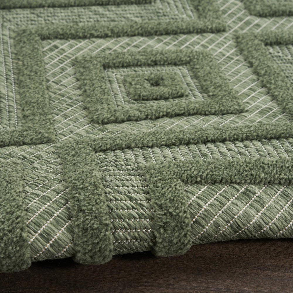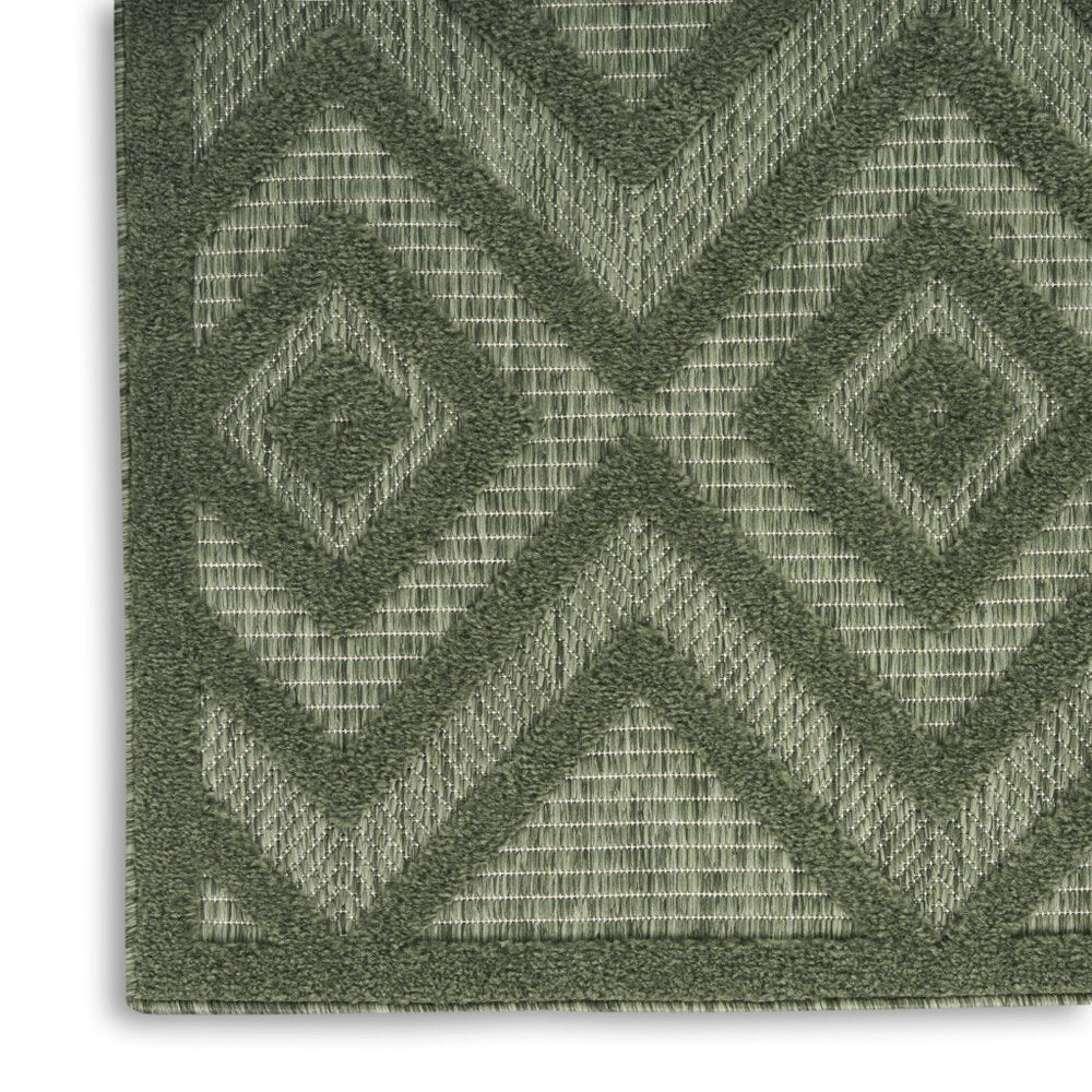 Add some artistry to your room with this 2-foot x 4-foot dark green and light green geometric indoor outdoor area rug. This rectangle shaped rug features a geometric design that will work well both indoors or out. A classic shape marries with good looking design for your living room, hall, bedroom, porch, patio, or poolside. Versatile in use, durable, and easy to maintain, this rug is an ideal solution to add a decorative and inviting touch to your indoor or outdoor space. 24-inch h x 48-inch w x 0.3-inch d.