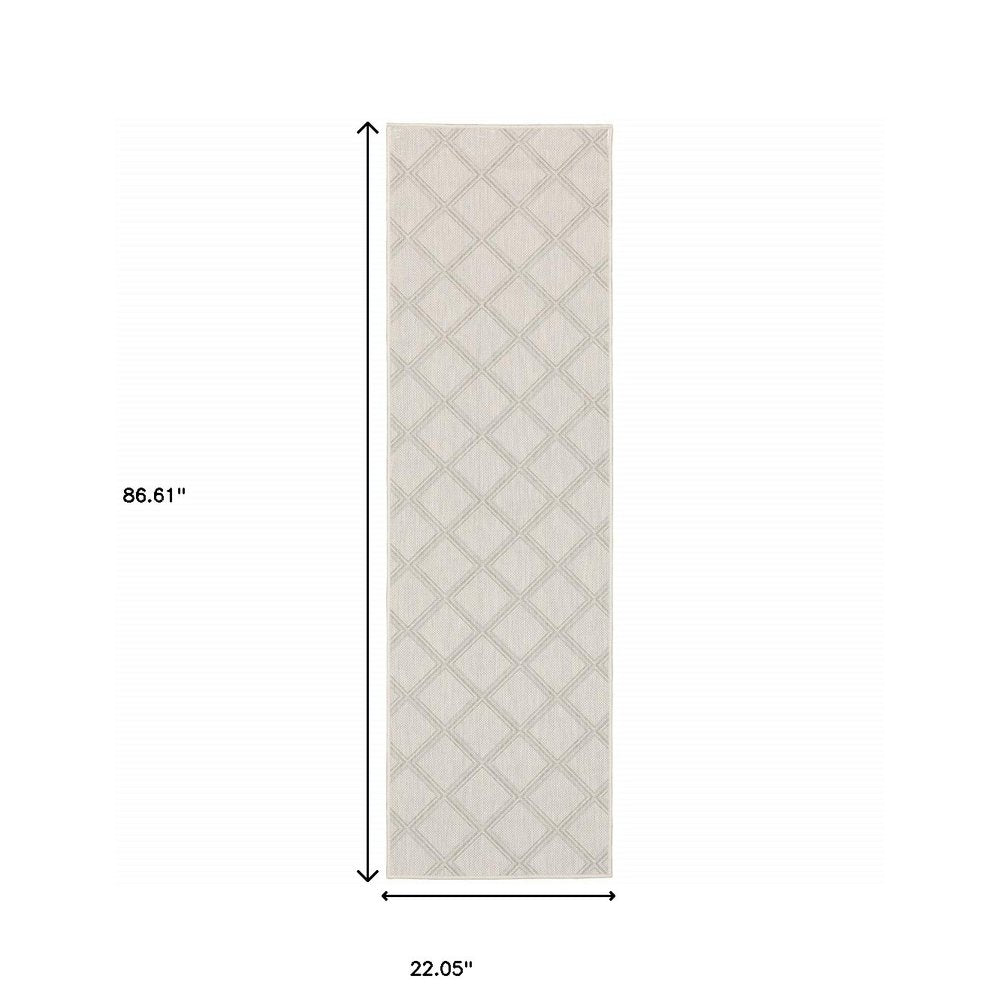 Add some artistry to your room with this 2-foot x 7-foot gray and ivory geometric stain resistant indoor outdoor area rug. This rectangle shaped rug features a geometric design in gray and ivory to give it visual interest. A classic shape marries with good looking design for your space Ideal for spaces with kids and pets, this rug is stain resistant to help repel stains and spilled liquids. Area Rugs help to give warmth and sense of home to your space. 0.07-inch H x 22.05-inch W x 86.61-inch D