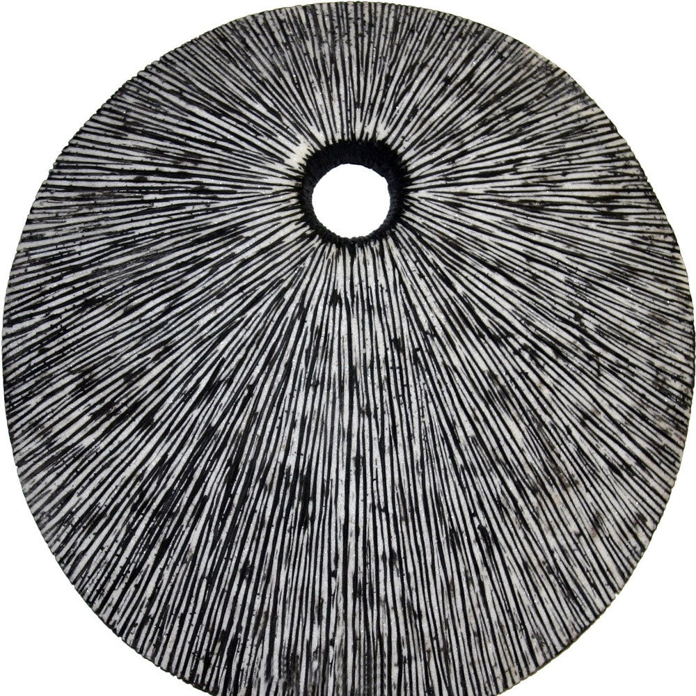 Our 20" contemporary Grey Round Wall Art wall art features a captivating yet simple spiral design that will bring a modern and contemporary vibe to your space. Expertly crafted of dark grey sandstone in a round design with an asymmetrical hole detail and finished in a textured ribbed design, this unique wall art will wow you and your guests for many years to come. Great as a stand-alone decorative accent, or can be paired with other sizes or items to achieve a truly unique and desired look. 20-inch H x 20-inch W x 2-inch D