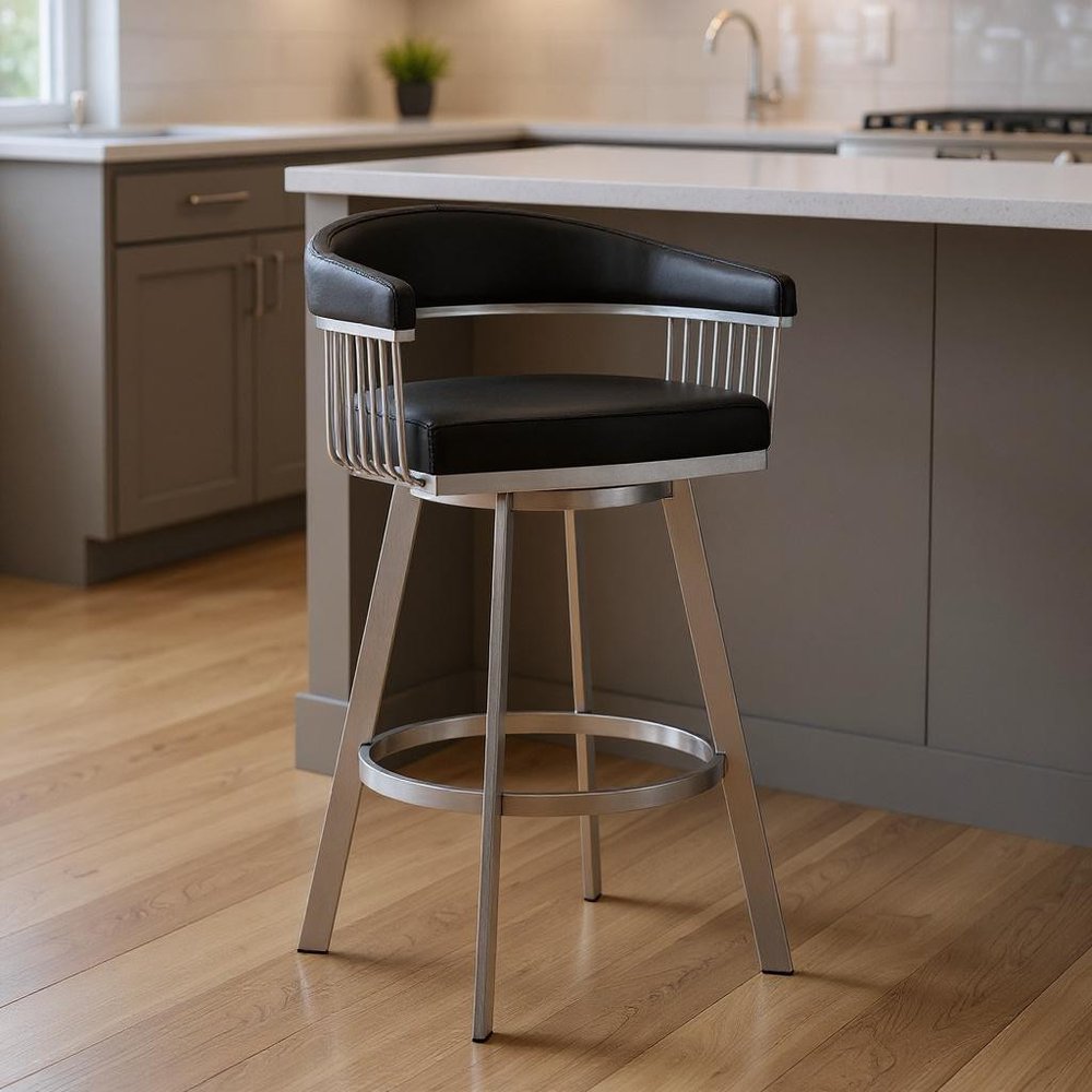 More from 25" Black And Silver Iron Swivel Backless Counter Height Bar Chair Collection
