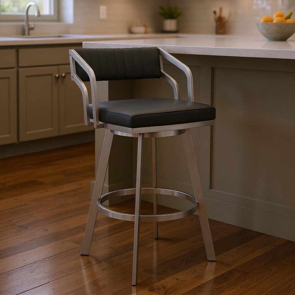 26" Gray And Silver Iron Swivel Low Back Counter Height Bar Chair