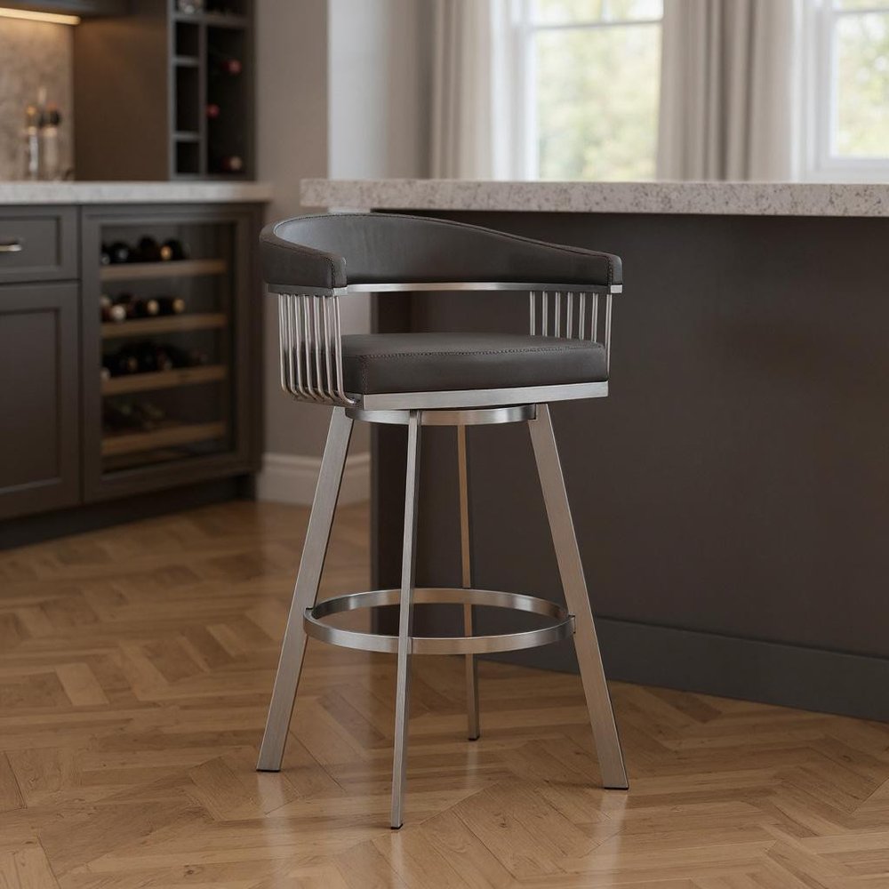 More from 29" Gray And Silver Iron Swivel Backless Bar Height Bar Chair Collection
