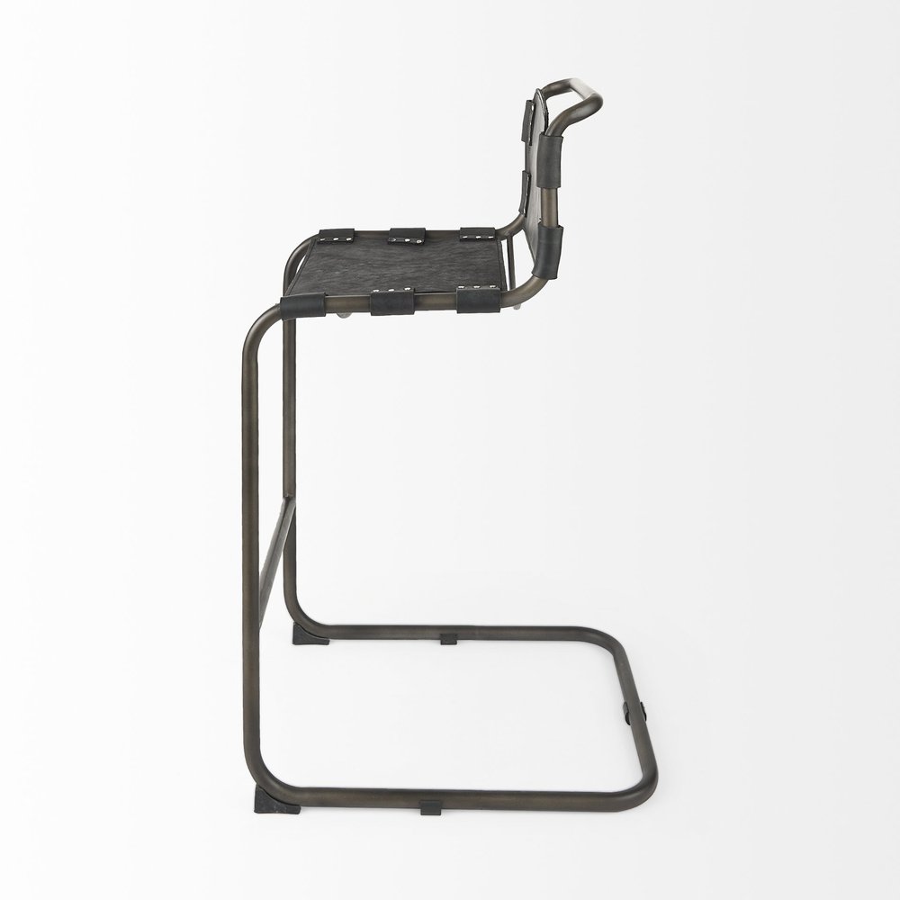 30" Black and Gray Leather and Iron Bar Height Bar Chair