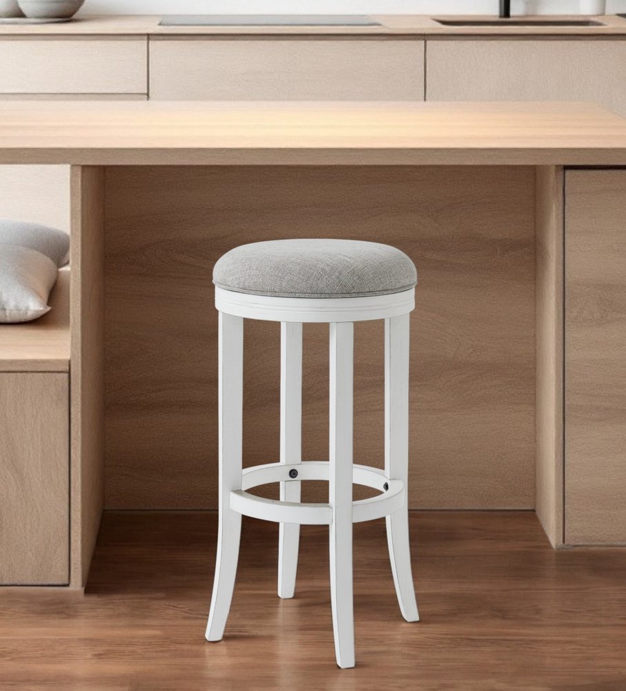 This 30-inch gray and antiqued white solid wood swivel backless bar height bar chair will be the perfect way to add some cool design and utility to your space similar to what you find in your favorite cafes or pubs. The round shape of the seat give this backless chair a fresh and fashionable look. Designed with a footrest for comfort and convenience. 30-inch H x 17-inch W x 17-inch D
