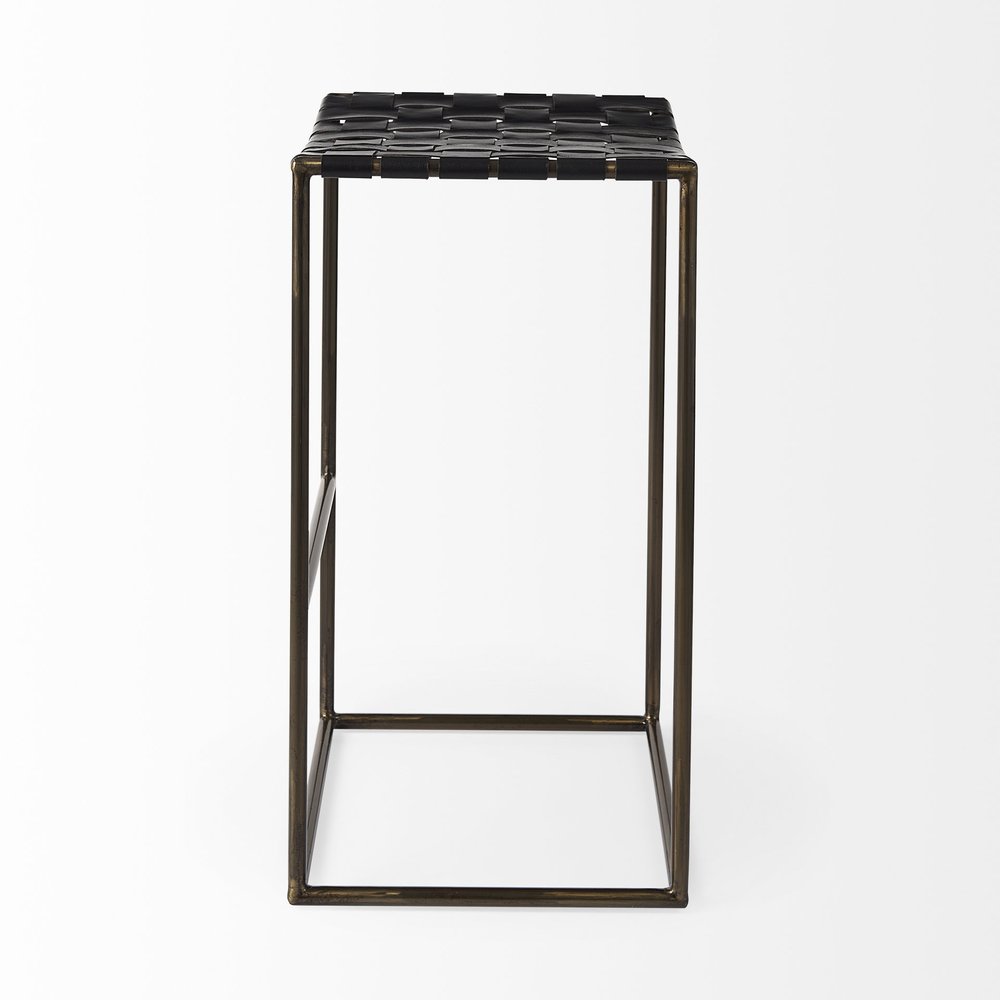 35" Brown and Black Leather and Iron Backless Counter Height Bar Chair